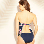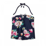 Get an elegant swim look with the Keyhole Bandeau Tankini Top from Kona Sol. This split-back tankini top sports a refined silhouette thanks to its keyhole front, making it an elegant choice for poolside lounging. If you're taking the activity level up a notch, an optional halter strap helps assure your top stays secure whether you're putting in work on a grand sandcastle or romping in the waves. A soft, pretty floral livens up the refined navy color, and gives you more options for mixing.