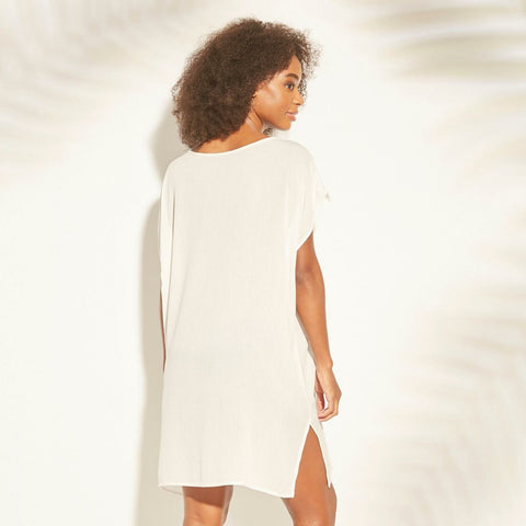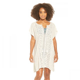 This Lace-Up Eyelet Cover-Up Dress from Kona Sol gives you a cover-up option as stylish as the swimsuit you wear it over. Made from breathable, lightweight rayon fabric to keep you cool in hot weather, the cover-up dress features a lace-up V-neckline, side slits at the hem and eyelet cutouts all along the front for a pop of texture.
