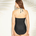 From sandy beaches to the local pool, enjoy your time by the water in the Laser-Cut Halter One-Piece Swimsuit from Kona Sol. This solid one-piece swimsuit is decorated with a laser-cut geometric pattern across the high neckline for a pop of chic style. The halter tie at the back of the neck lets you create a comfortable fit every time you wear it.