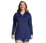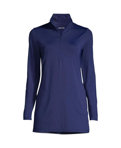 Every body is a beach body. But at Lands' End we know there are still times when you need to cover up! Whether you want shade from the midday sun or just like to slip something on when you feel chilly this Women's Quarter Zip Long Sleeve Tunic Rash Guard Cover-up will do the job.