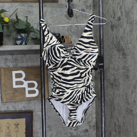 Over The Shoulder One Piece |Gold Logo Rectangle |Gold Logo Trim| Fabric: 83% Nylon / 17% Elastane Contrast: 90% Nylon / 10% Elastane| Care: Hand wash cold use non-chlorine bleach line dry do not iron do not dry clean| Sun Protection: No| Lining: Yes| Closure: Pull on / Pull over| Chlorine Resistant: Yes| Fit: Shaping Fit| Cup Support: Removable Cups| Front Coverage: V-Neck| Bottom Coverage: Full Bottom Coverage| Country of Origin: Imported