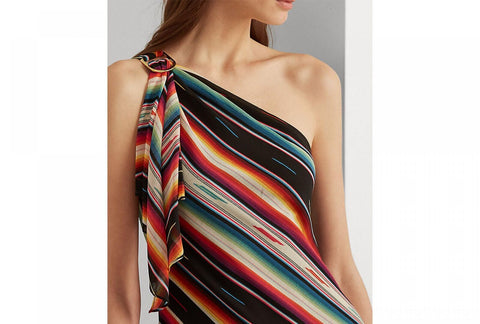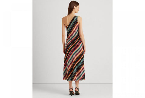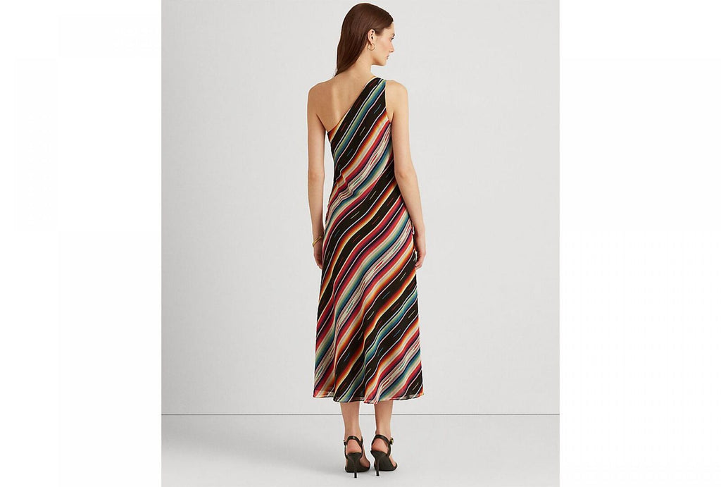 Lauren Ralph Lauren Striped Crinkle Georgette One-Shoulder Dress 253876298001