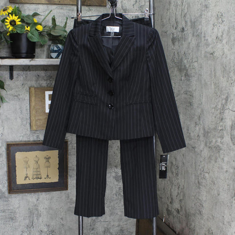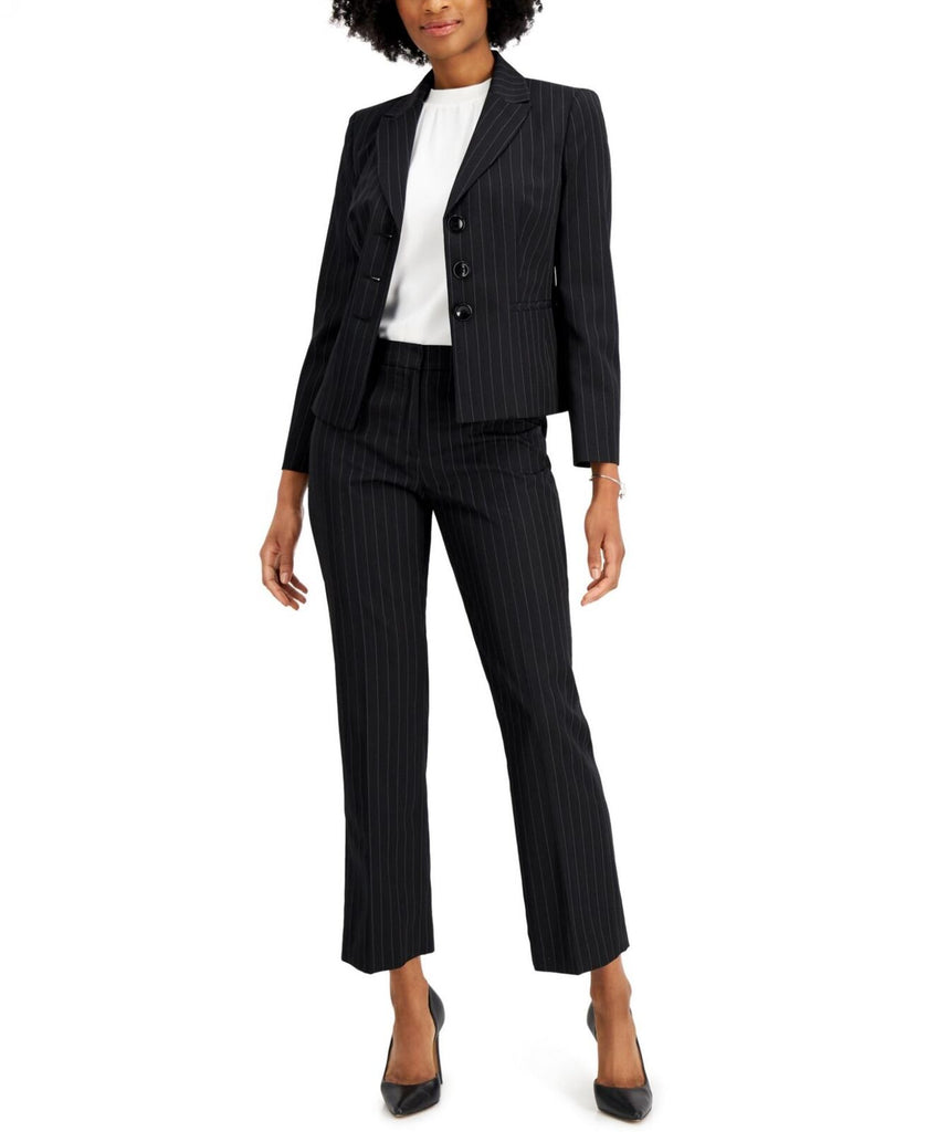 A modern, sophisticated look for your work wardrobe, this petite suit from Le Suit boasts an elongating pinstriped print and straight leg.