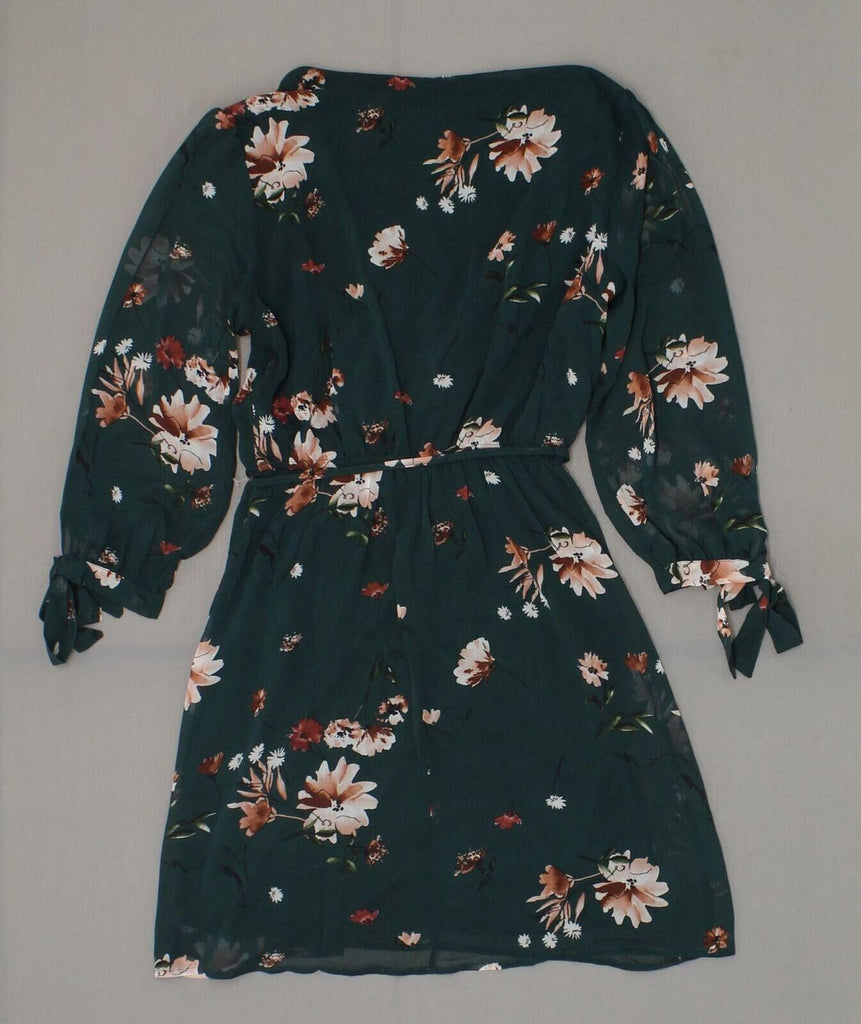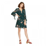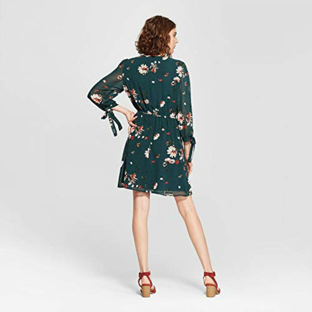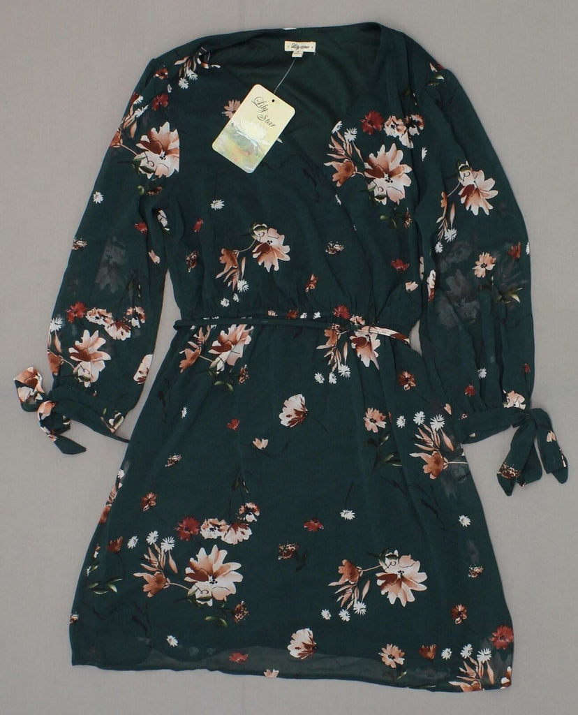 Lily Star Women's Floral Print Tie 3/4 Sleeve Crossover V-Neck Dress