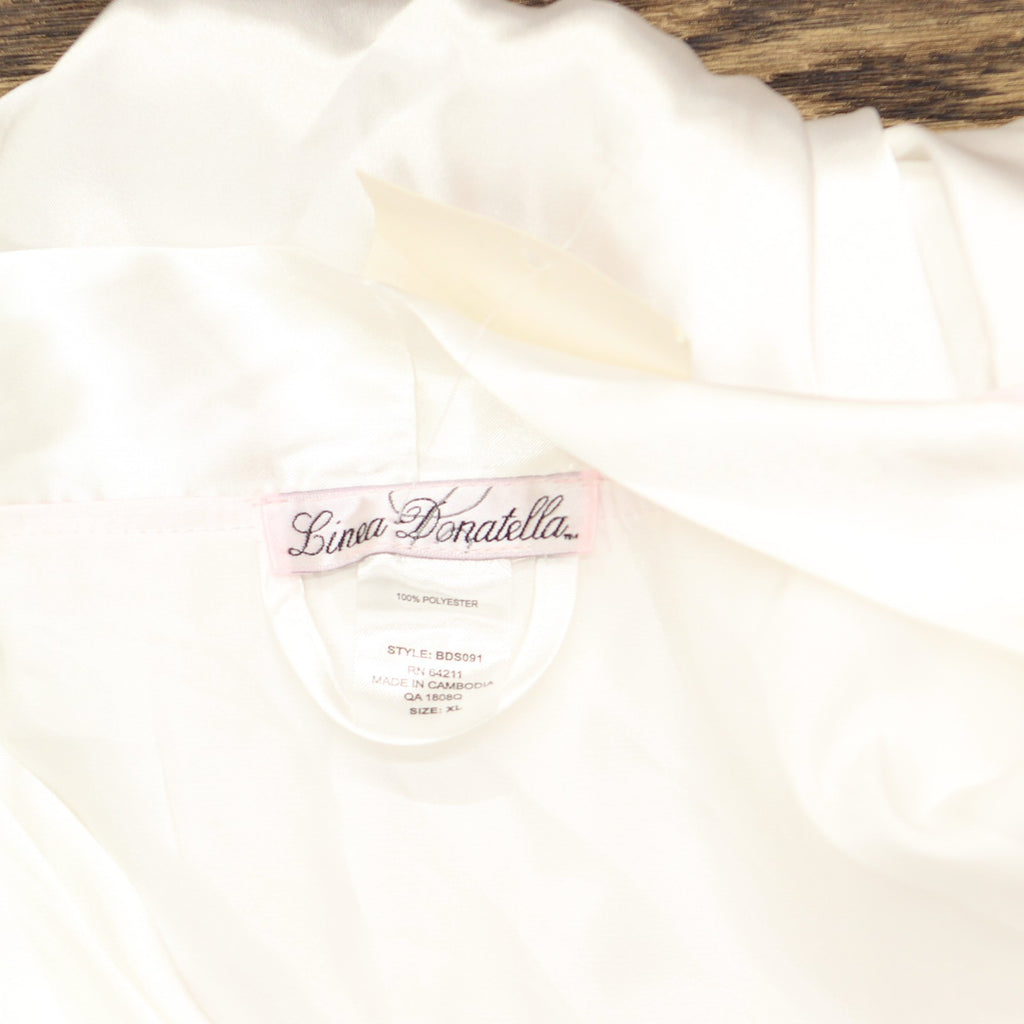 Get ready for your big day in luxury with this three-piece satin set from Linea Donatella: robe, cami and tap shorts.