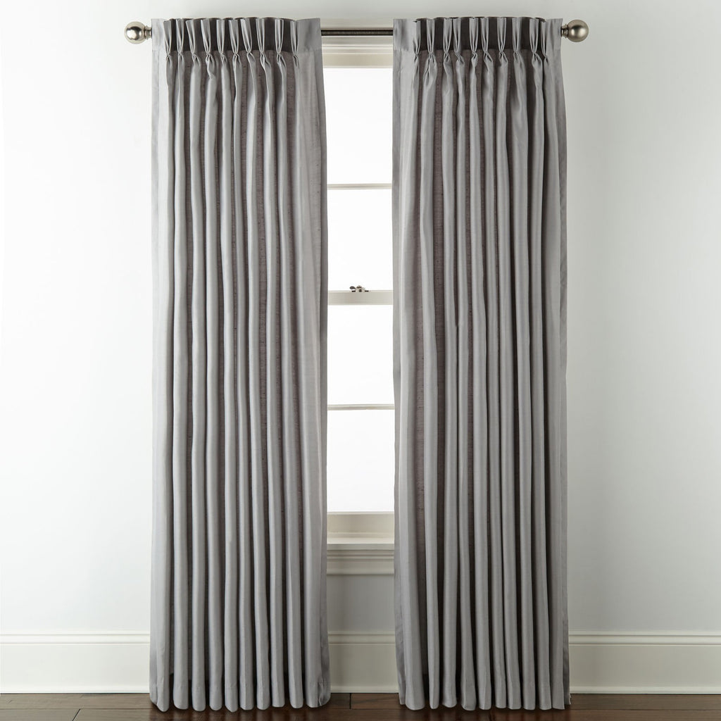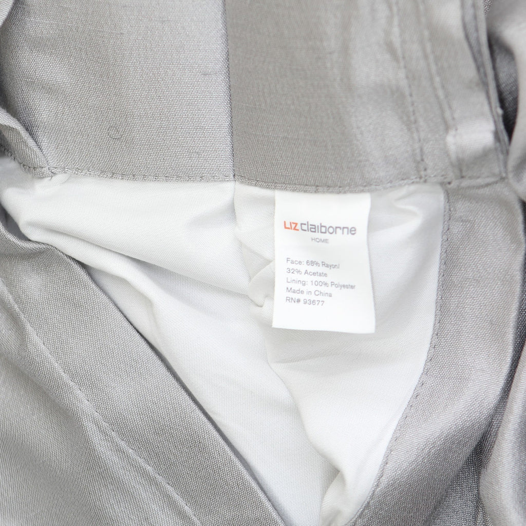 This Liz Claiborne single curtain panel will add rich color, texture, and an inviting ambiance to any home. Made from a woven blend, this lined curtain has an elegant pinch pleat design with subtle light filtering properties, plus back tabs for easy installation and removal. Treat a smaller window or get a set of two panels for a larger area. Each single panel includes 10 pleats. Number of Panels: 1 Included: 1 Panel(s) Top Construction: Back Tab, Pinch Pleat Top Opening: 4 In Back Tabs Use: Indoor Fiber Content: 68% Rayon, 32% Acetate Fabric Description: Plain Woven Lining: Lined Lining Material: Polyester Light Filtration: Light-Filtering Care: Dry Clean Only Curtain Length: 95 Inch Curtain Width: 50 Inch Back of Curtain