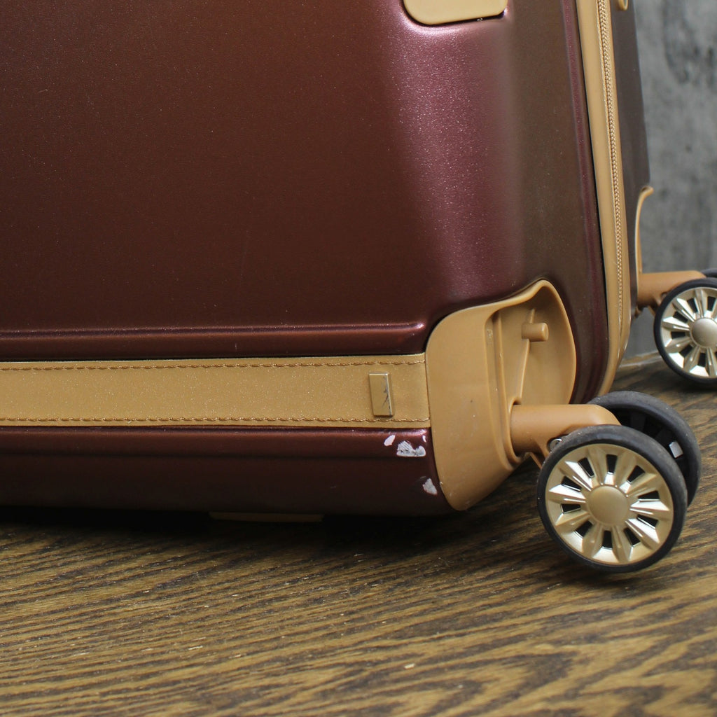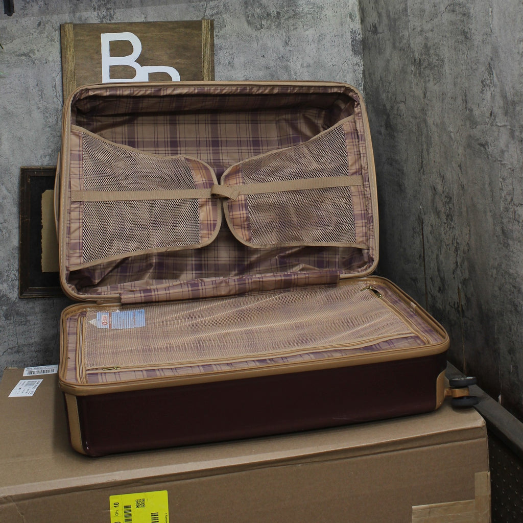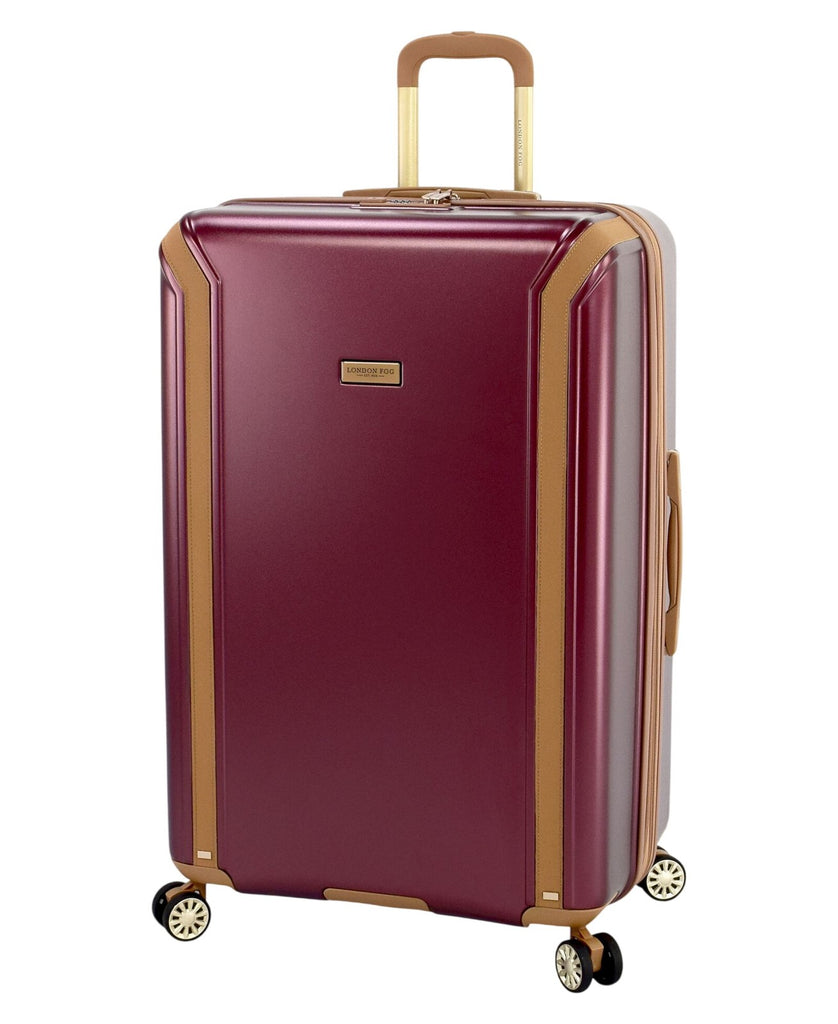 The London Fog regent 31.5" expandable spinner is made in a durable polycarbonate alloy hard side construction with a leather inlay trim. There are 8 recessed spinner wheels that make traveling smooth. Interior has zippered lid compartment, mesh pocket and mesh packing cradle to keep your belongings organized. There are TPR (thermoplastic rubber) cushion grips on top and side carry handles and a bottom grip handle on all sizes. Spinners expand 2" for additional packing capacity. Industrial zippers are self repairing.
