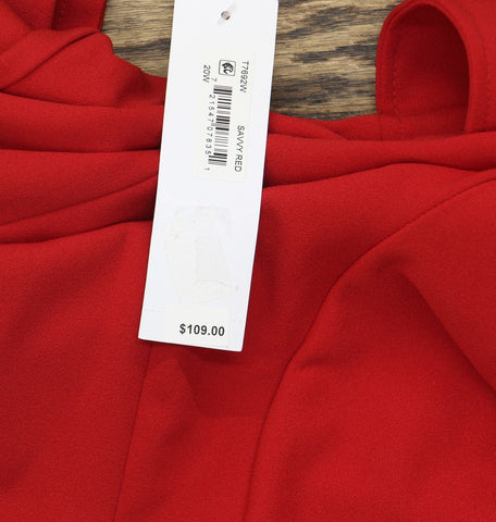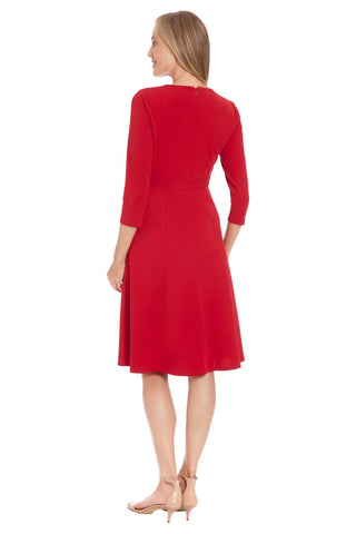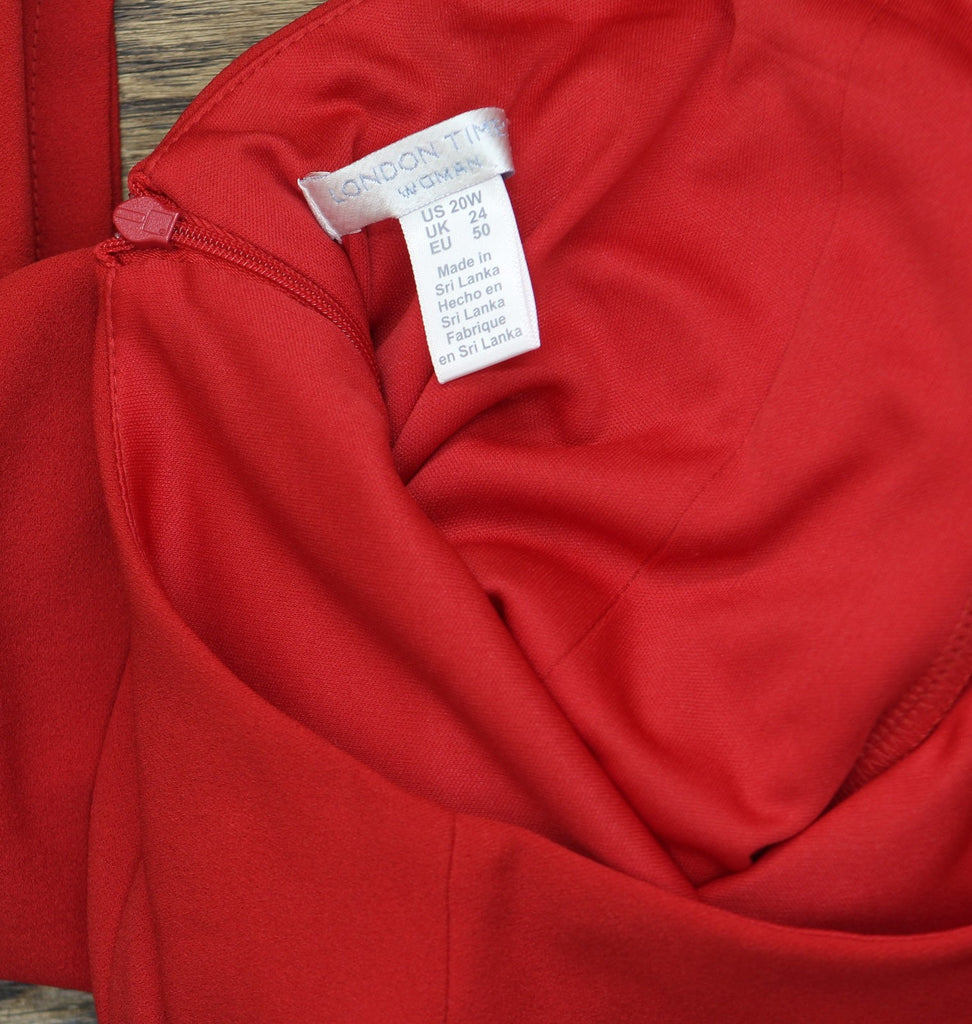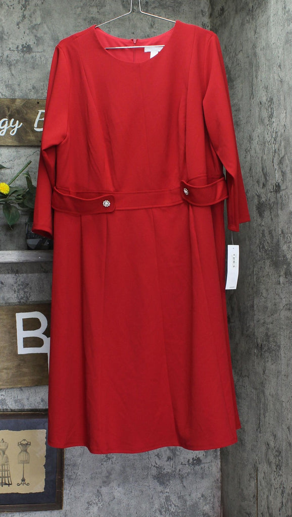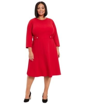 London Times Women's Plus Size A-Line Midi 3/4 Sleeves-Cocktail Work and Special Occasions-Versatile Wedding Guest Dresses, Savvy Red
