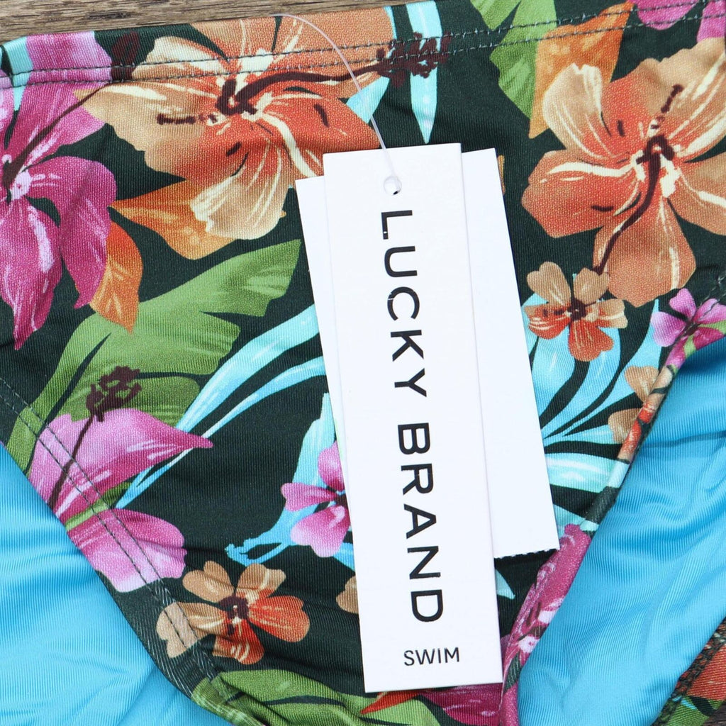 Meet the Lucky Brand Vibrant Bikini Bottoms, your perfect companion for the beach or poolside relaxation. Crafted from a blend of nylon and spandex, these hipster pant bottoms offer both comfort and flexibility. Adorned with a chic floral print and featuring a shirred back, they bring a trendy twist to your swimwear ensemble. Pair it with our Vibrant bikini top to create a dazzling set!