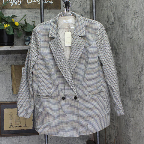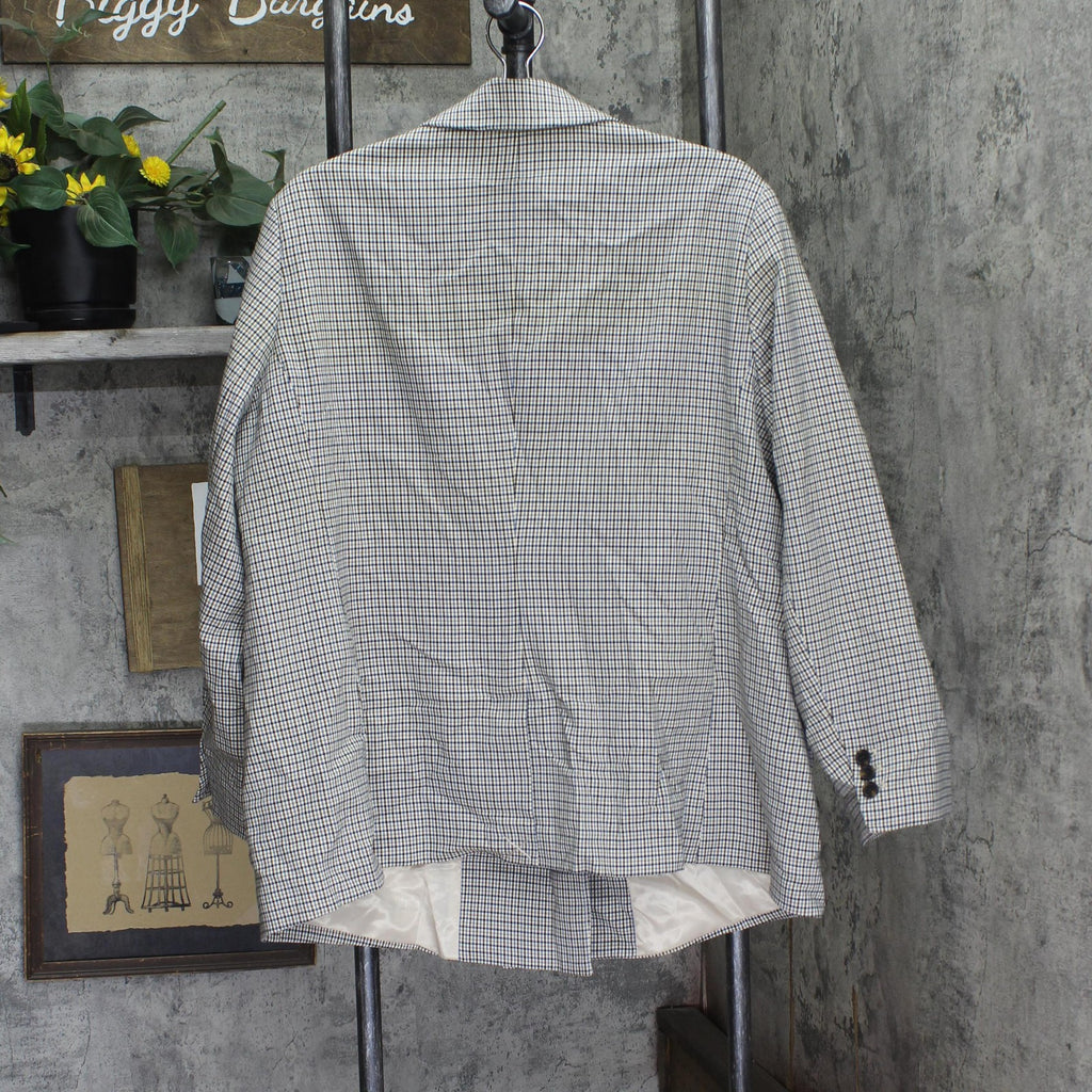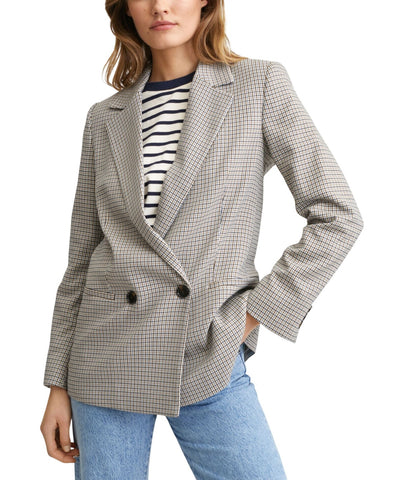 Crisp checks enhance the undeniably classic style of a double-breasted blazer fashioned with recycled fibers. Notched lapels 35% polyester, 33% viscose, 30% recycled polyester, 2% elastane Dry clean Imported