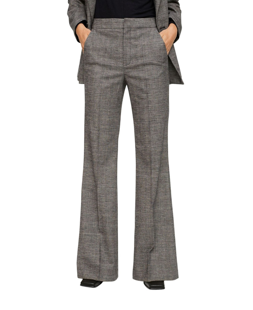 Look smart and stylish by wearing these check wool suit pants from Mango. This high waist pant has cotton and wool mix fabric composition and features check pattern, long and flared design, zip and hook fastening, and two side pockets.