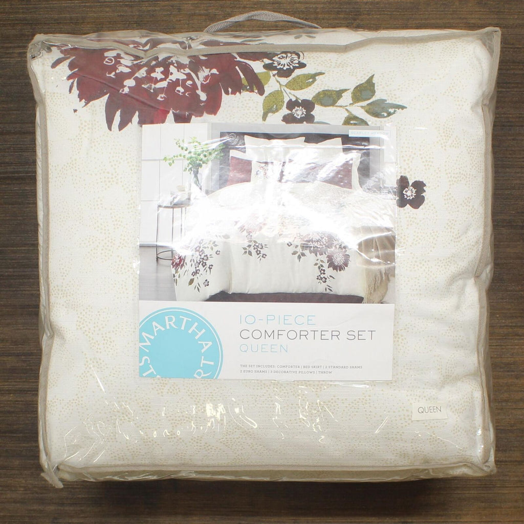 Give your room a garden-fresh feel with the beautiful blooms of this 10-piece Scarlet Meadow comforter set from Martha Stewart Collection. Including coordinating shams, decorative pillows and a cozy throw, these ensembles have all the pieces needed for a professionally styled look.