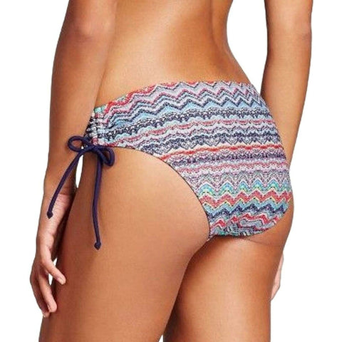 Take on summer in easy style with the Patterned Ruched Side Tie Hipster Bikini Bottom from Mossimo. This hipster bikini bottom features ruched sides with ties that add interesting detail while also ensuring you have the right fit each time. Just add a flattering bikini top for the perfect summer style that pops.