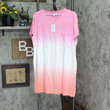 French terry short sleeve dress features chest pocket and genuine tie dye pattern. Measures approximately 34" from shoulder to hem on size small