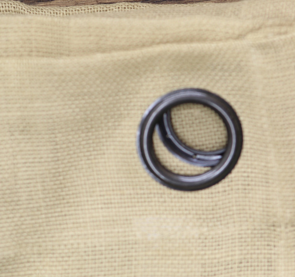Beautifully frame your windows with the Burlap Grommet-top Curtain Panel. Highlighted by a natural shade of color, this curtain panel is made of true jute burlap and is finished with a grommet top making it easy to slide. Grommets feature a bronze finish. The woven jute burlap is dry clean only. Panels are sold individually.