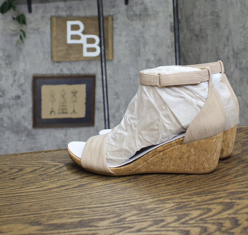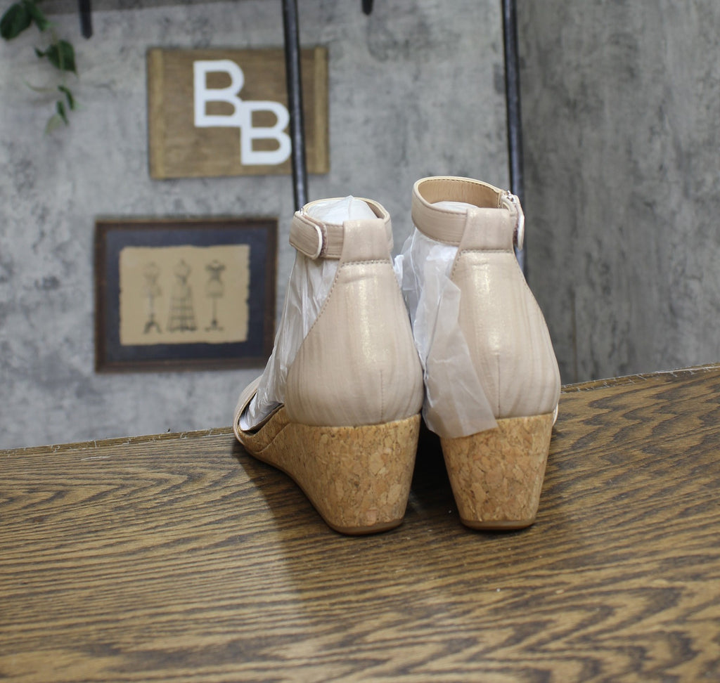 Comfy chic wedge sandal with a light cork bottom Manmade/fabric or manmade upper with a round toe Adjustable hook-and-loop closure Contour+ technology for a premium fit and all-day comfort experience Non-slip outsole