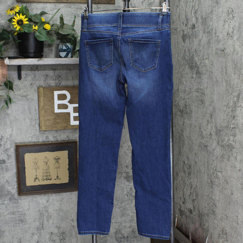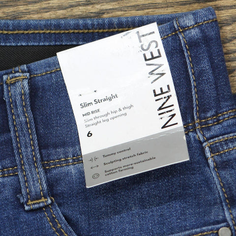 Pull together a great look with these women's Nine West tummy-control slim straight jeans. Pull together a great look with these women's Nine West tummy-control slim straight jeans. Tummy-control waistbandFIT & SIZING Short: 29-in. inseam Average: 31-in. inseam T/L: 33-in. inseam Slim-straight leg openingFABRIC & CARE Cotton, polyester, rayon, spandex Machine wash Imported