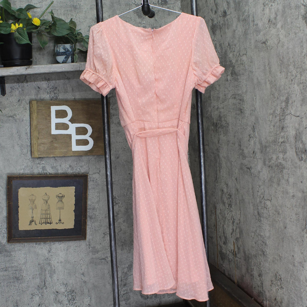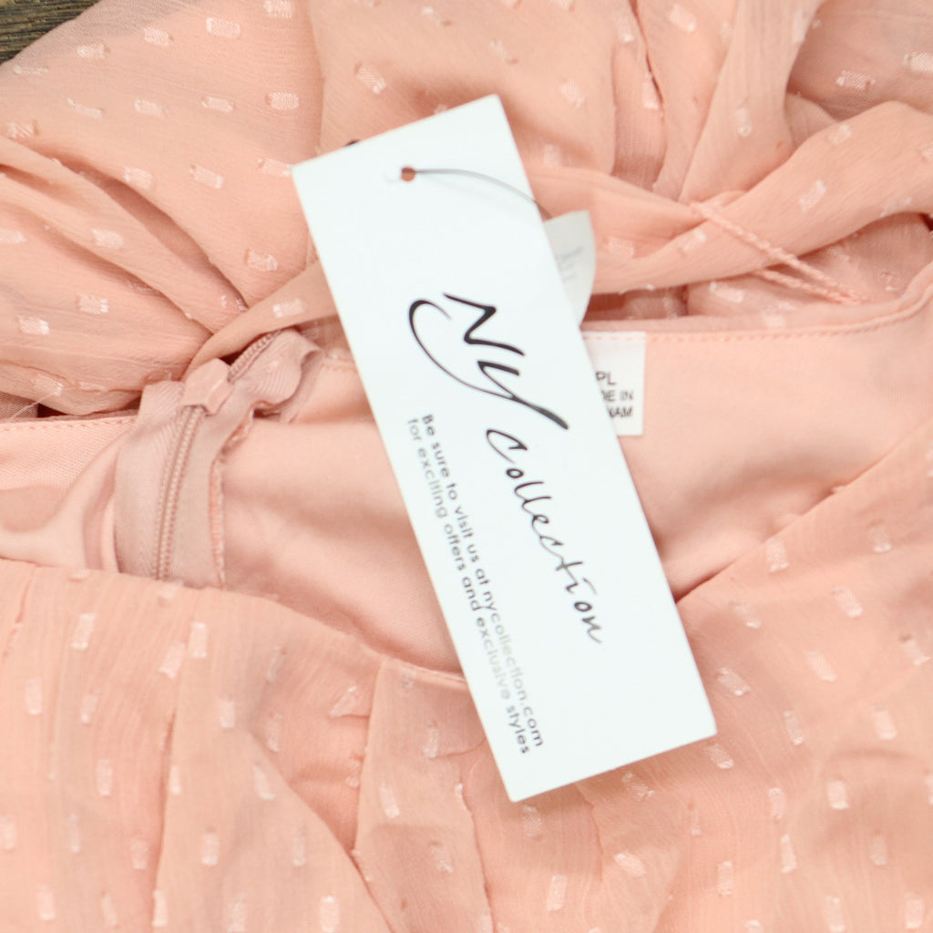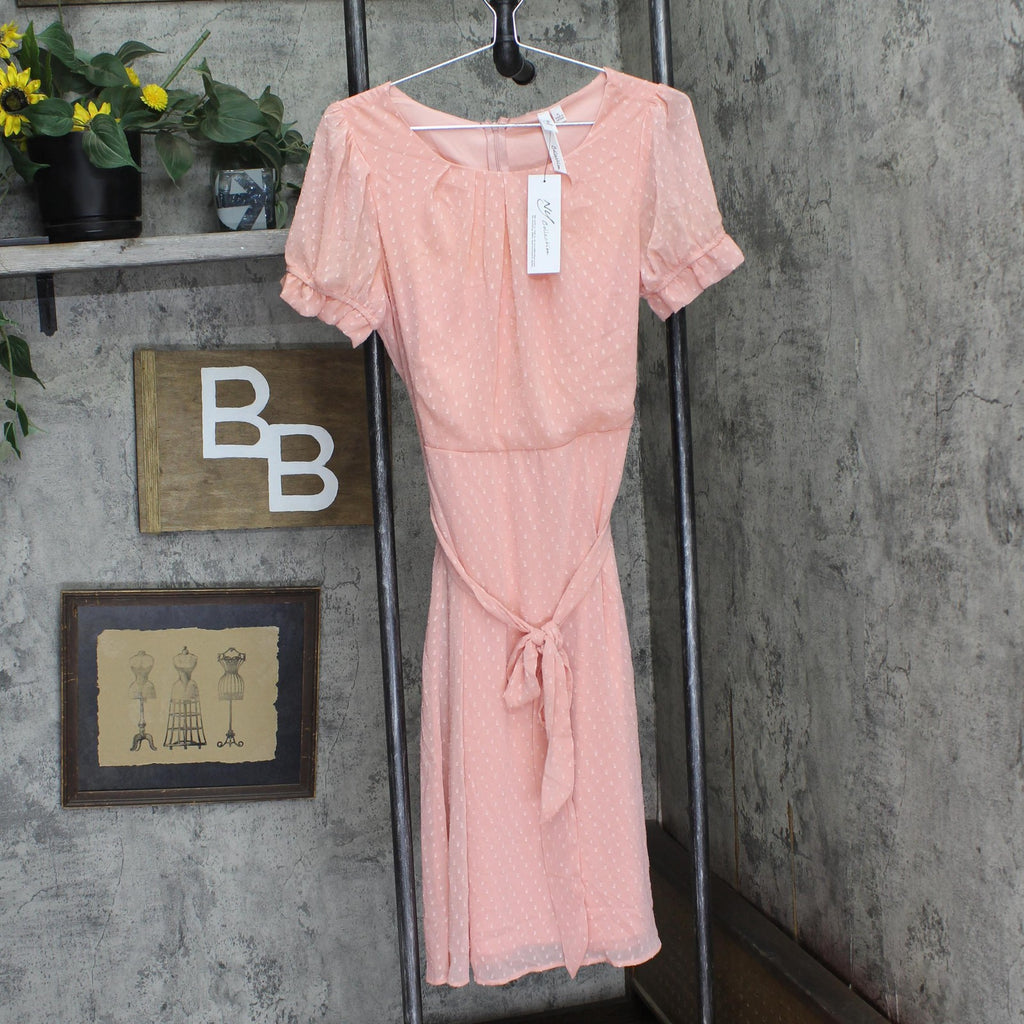 Ny Collection Petite Short Sleeve Belted Swiss Dot Dress Mellow Rose Pink PL