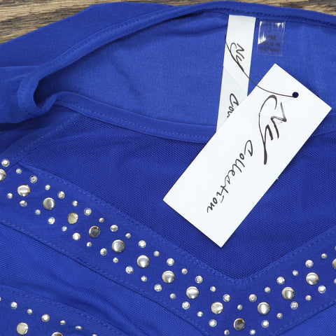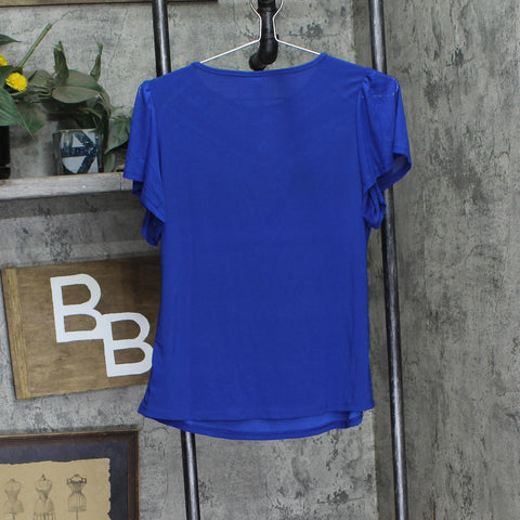 Perfect for day or night NY Collection presents this eye-catching flutter sleeve top. Mesh insets are highlighted with rhinestones. Short mesh flutter sleeve Scoop neck Studded neckline Polyester/spandex Machine washable Imported