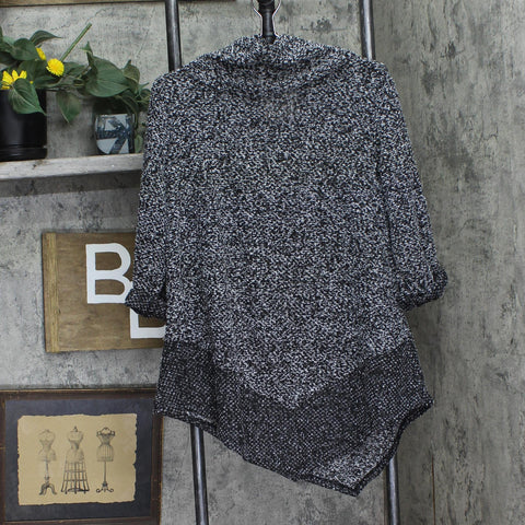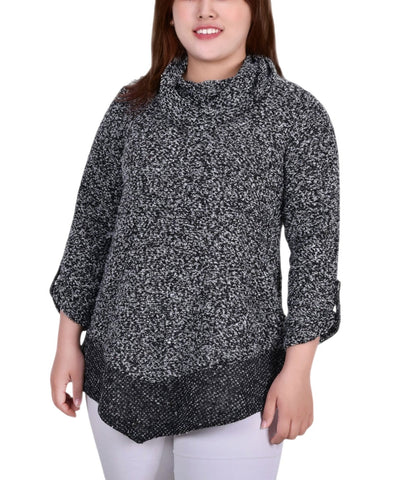 Choose comfort and style with the Ny Collection cowl neck asymmetrical nubby tunic.