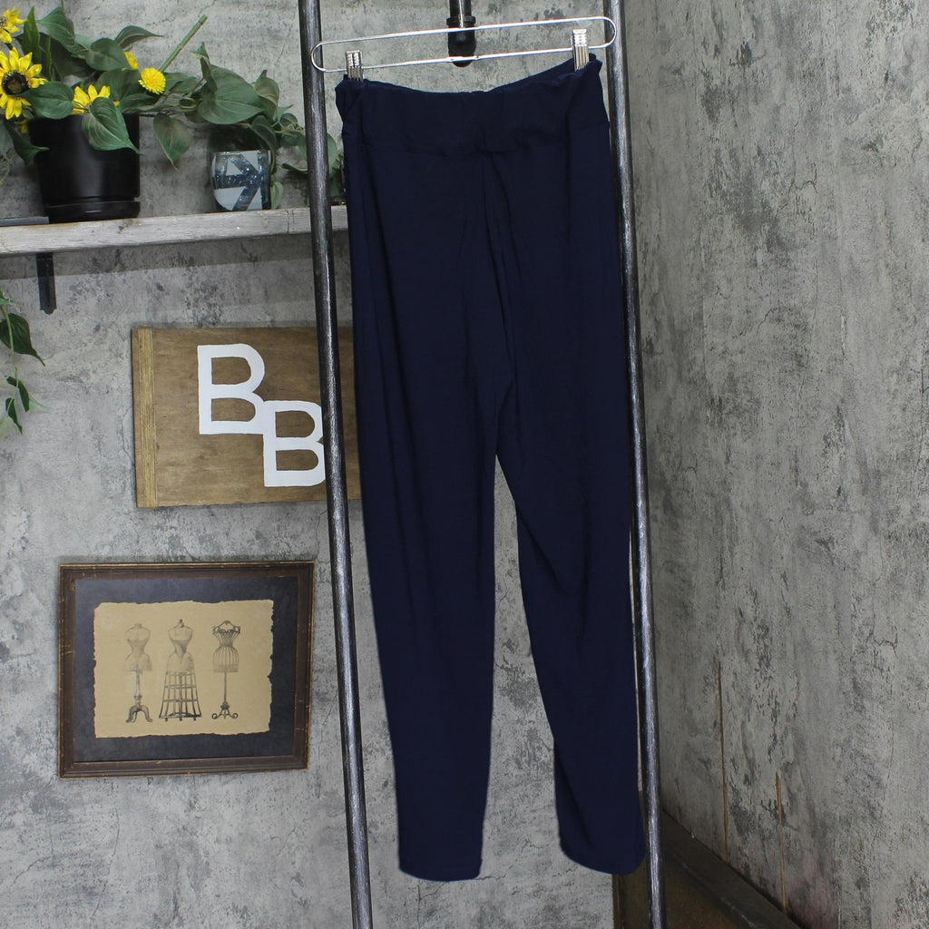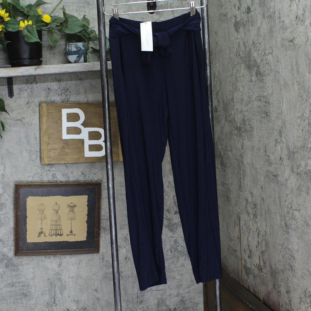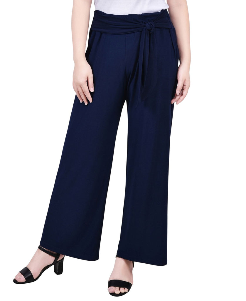 Ny Collection Womens Petite Cropped Pull On Pants with Sash Navy Blue PM