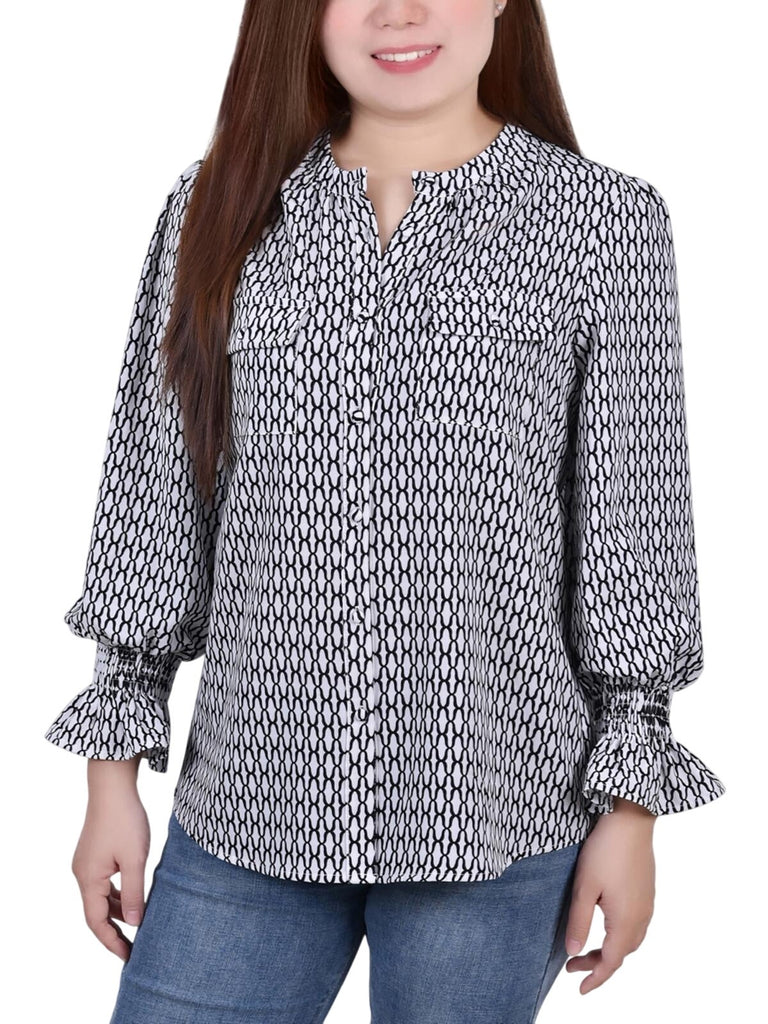 Manufacturer: NY Collection Style Type: Blouse Collection: NY Collection Sleeve Length: Bell Sleeves Material: 97% Polyester/3% Spandex Fabric Type: Polyester Specialty: Pocket Sku: BH5669495. .