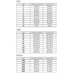 | Size | Width (in.) | Overall Length(in.) | Inseam (in.) |