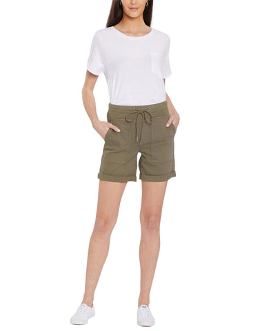 Nydj drawstring cargo shorts in petite in stretch twill blend comfort with sophistication in their elevated utility styling. Our unique lift tuck technology keep the front looking smooth and sleek. Polished stretch-twill fabric and crisp cuffs enhance the refined appearance.