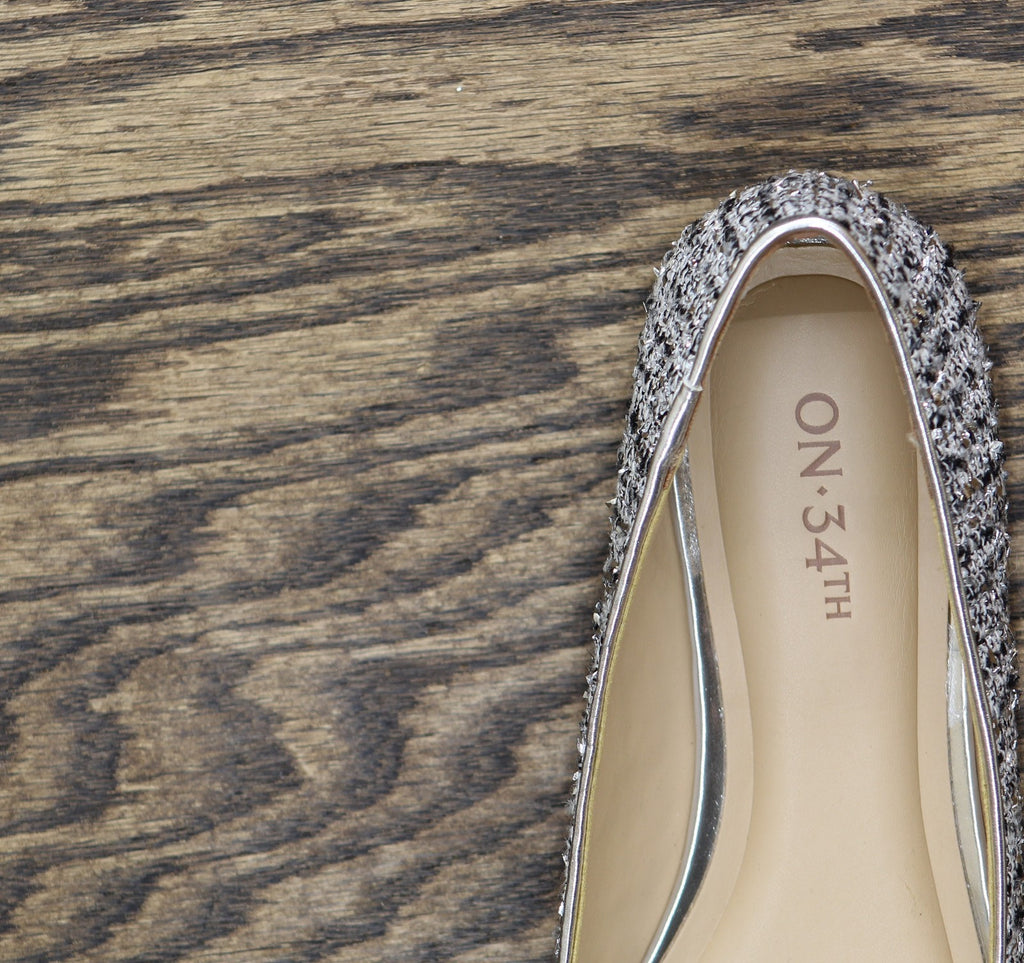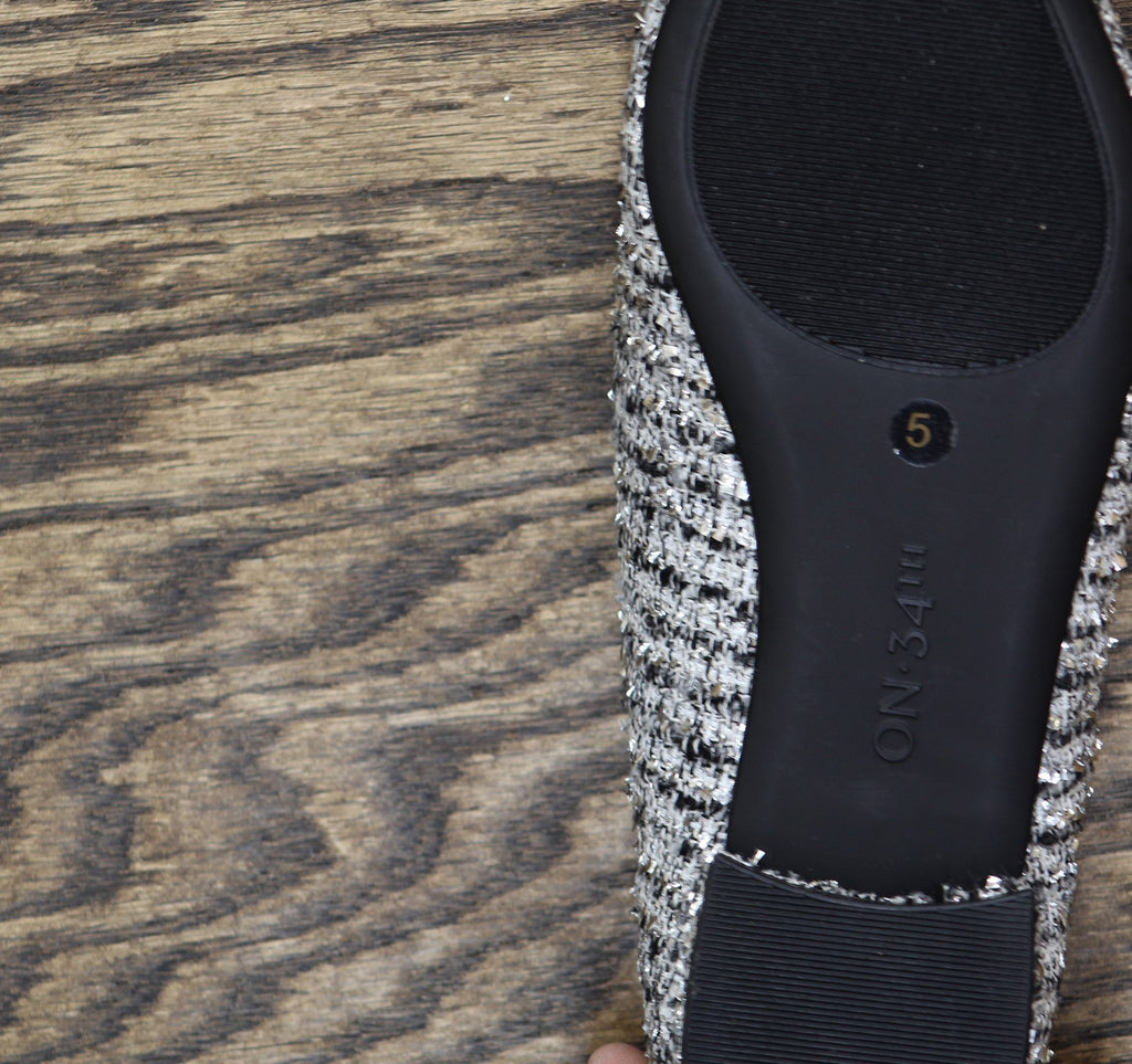 On 34th Womens Millee Embellished Bow Flats 10019810900 Silver Tweed Gray 5M