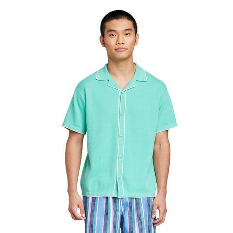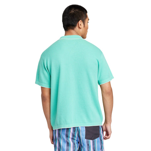 Short-sleeve polo shirt featuring a distinct notched collar with a full-length button-down front. Tailored in a casual fit that hits below the waist. Short-sleeve knit polo shirt Midweight cotton fabric Notched collar neckline Full-length button-down placket Casual fit Sizing: Mens Material: 95% Cotton, 5% Recycled Cotton Fit: Casual Fit Length: Below Waist Garment Style: Short Sleeve, Front Collar Button Fabric Name: Doubleknit Neckline: Polo Collar Garment Details: No Pocket Fabric Weight Type: Midweight Fabric Garment sleeve style: Basic Sleeve Care and Cleaning: Machine Wash, Tumble Dry