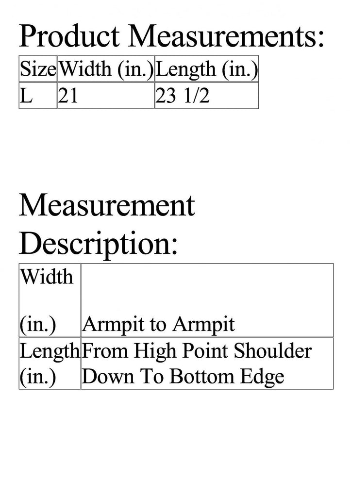 | Length (in.) | From High Point Shoulder Down To Bottom Edge |