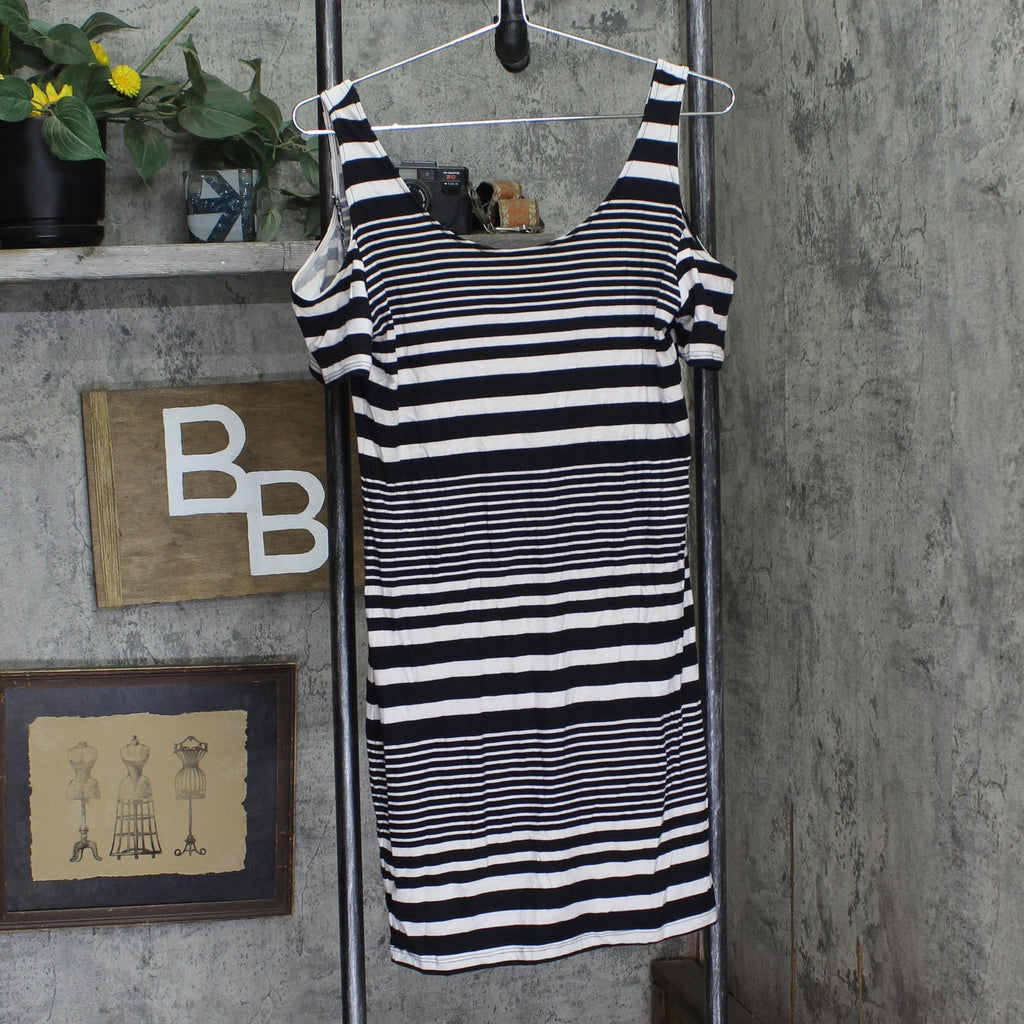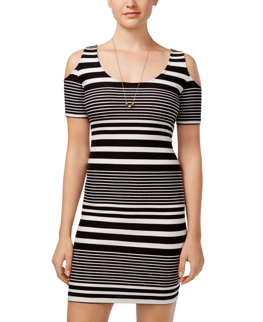 Planet Gold Juniors Printed Cold-Shoulder Bodycon Dress Black / Cream L