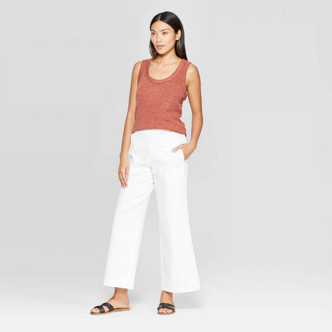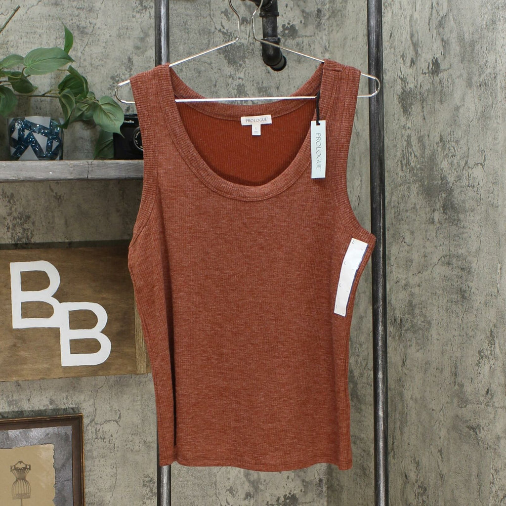 Update your well-curated wardrobe with the minimalist design of this Scoop-Neck Fitted Rib-Knit Tank Top from Prologue. Cut from a cotton blend for quality comfort, this scoop-neck top is suited to balance a variety of looks year-round. It features a fitted silhouette for a polished look, but it gets a touch of easygoing charm from a rib-knit fabrication, making it the perfect companion for both casual and dressy outfits.