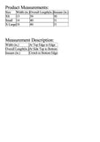 | Size | Width (in.) | Overall Length(in.) | Inseam (in.) |