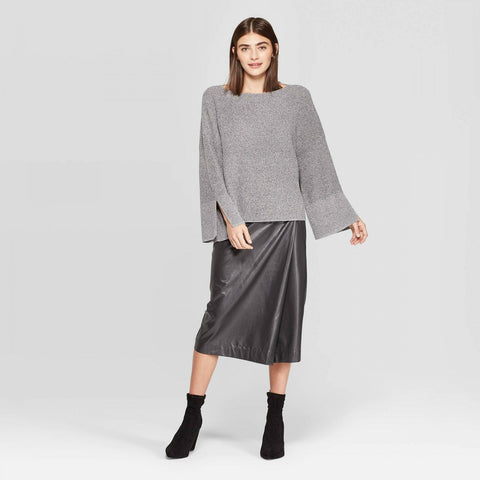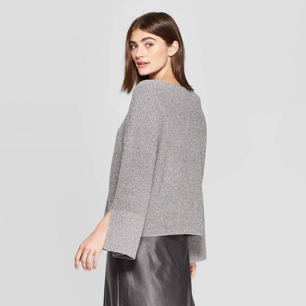 Modern minimalism makes up this Long-Sleeve Boat-Neck Pullover Sweater from Prologue. A solid gray color offers a sleek and versatile look, making this boat-neck sweater a well-rounded addition to your wardrobe. It's made from a soft material for complete comfort, and relaxed sleeves with slits at the cuffs coupled with the overall loose silhouette allow for easy transitional wear. It sports a clean-cut boat neckline for polished flair, and the at-hip length roundsr easy transitional wear. It sports a clean-cut boat neckline for polished flair, and the at-hip length rounds things off for a sleek finish.