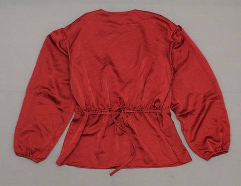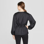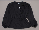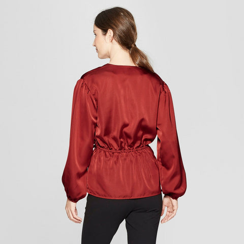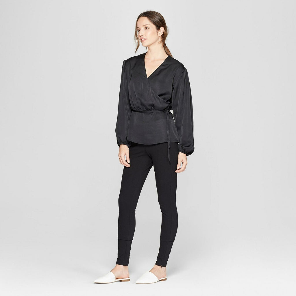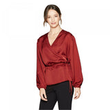 Clean lines and subtle texture make this Long-Sleeve Wrap Blouse from Prologue a simply sophisticated piece you'll love adding to your wardrobe. A satin weave gives this long-sleeve blouse a runway-worthy look, with a wrap silhouette fashioned with a side tie elevating the design for an elegant aesthetic. Elastic cuffs complete the put-together look, and you can easily find a myriad of ways to style this timeless blouse.