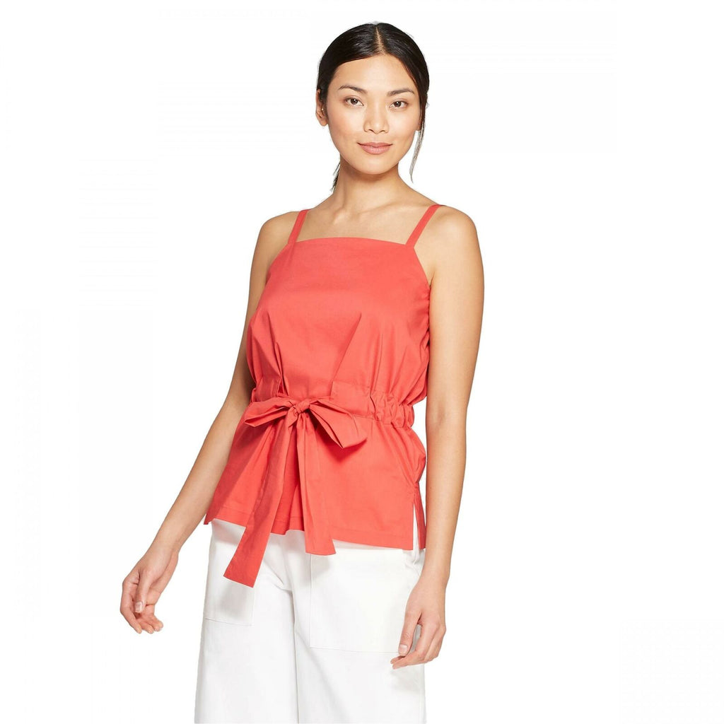 With attention placed on a modern-day silhouette, the Square-Neck Tie-Waist Tank Top from Prologue makes a sleek addition to any wardrobe. This top is perfectly balanced with a relaxed fit that gets extra shaping from a tie waistline and cinched sides, making for a comfortably cool yet elegant design. Slits on the sides put the finishing touch on this top that's suited for both casual and formal looks.