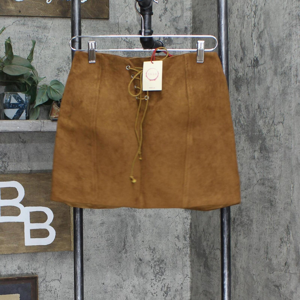 Raga Womens Faux Suede Short Mini Skirt Brown Rivka L