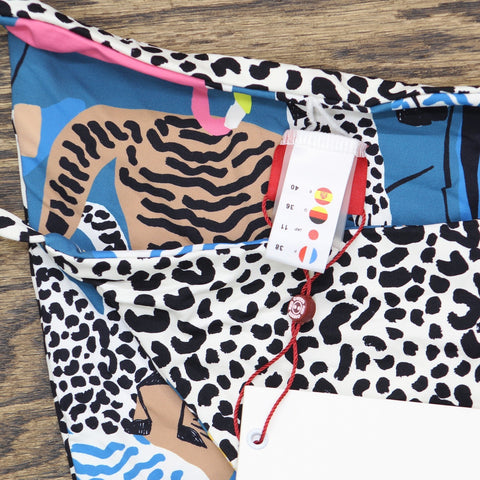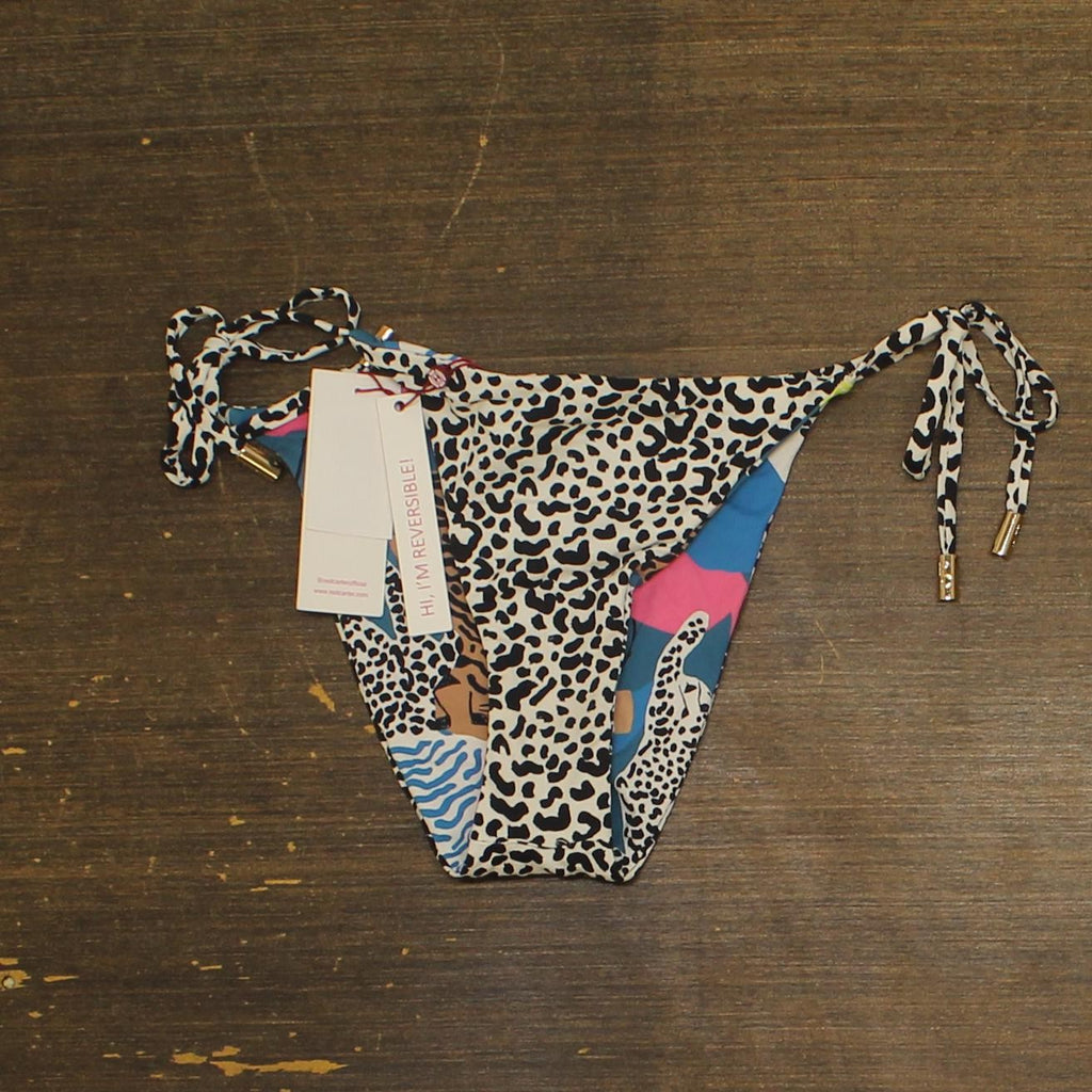 Adjustable tie sides|Reversible design|Gold tassel detail |85% Nylon 15% Spandex