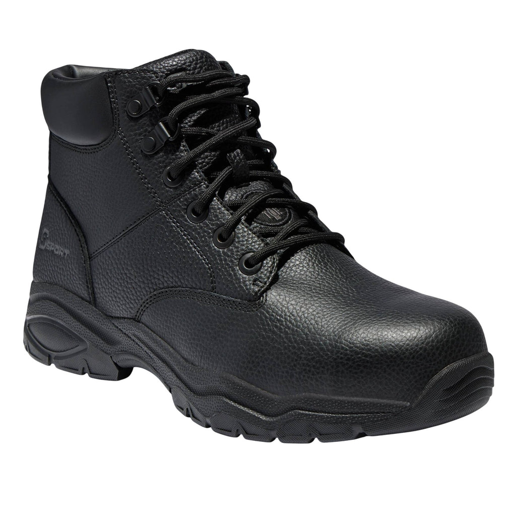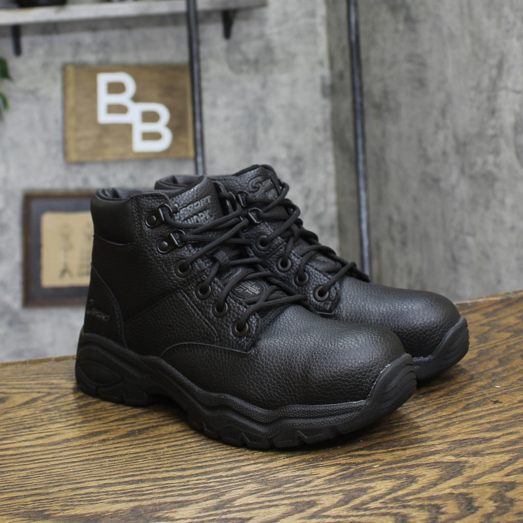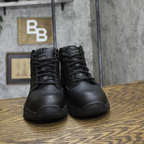 Stay protected in comfort and safety you can depend on with the classic S Sport by Skechers Men’s Elton Steel Toe Boot. This lace-up work mid boot design features a leather and synthetic upper with a steel safety toe front, Skechers Memory Foam cushioned comfort insole, shock-absorbing midsole and traction outsole. Steel toe meets ASTM F2413 impact & compression standards Leather and synthetic upper with lace-up front, S Sport logo details Sporty work boot design Skechers Memory Foam cushioned insole Shock-absorbing midsole and traction outsole, 1/4-inch heel Sizing: Mens Fabric Name: Mesh Care and Cleaning: Avoid Extreme Heat Footwear Lining Material: 100% Polyester Construction: Cushioned Insole Footwear Insole Material: 100% Polyester Protective Qualities: Steel Toe Features: Lace Up Height Type: Ankle Toe Style: Round Toe Footwear Upper Material: 51% Leather and 49% Polyurethane Footwear Outsole Material: 73% Rubber and 26% EVA (Ethylene Vinyl Acetate) Heel: No Heel Boot Shaft Height: Approximately 5.0 Inches Shoe Width: Medium Footwear toe openness: Closed Toe Footwear outsole details: Treaded Outsole Footwear outsole material 3 percentage: 1 Footwear outsole material 3: PVC (Polyvinyl Chloride)