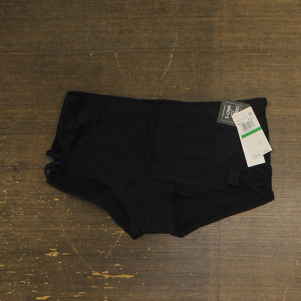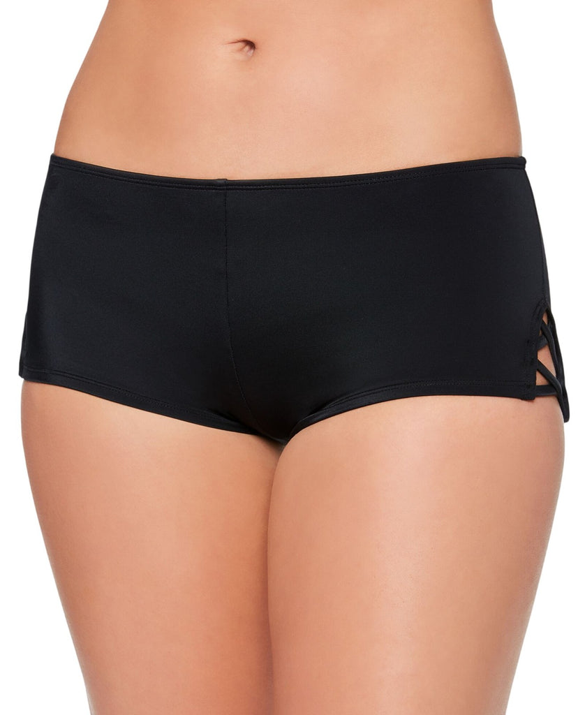 Sporty boyshorts take on a decidedly fun vibe in this sleek Salt + Cove swim look, a classic and flattering silhouette freshened with strappy cutouts at the sides.