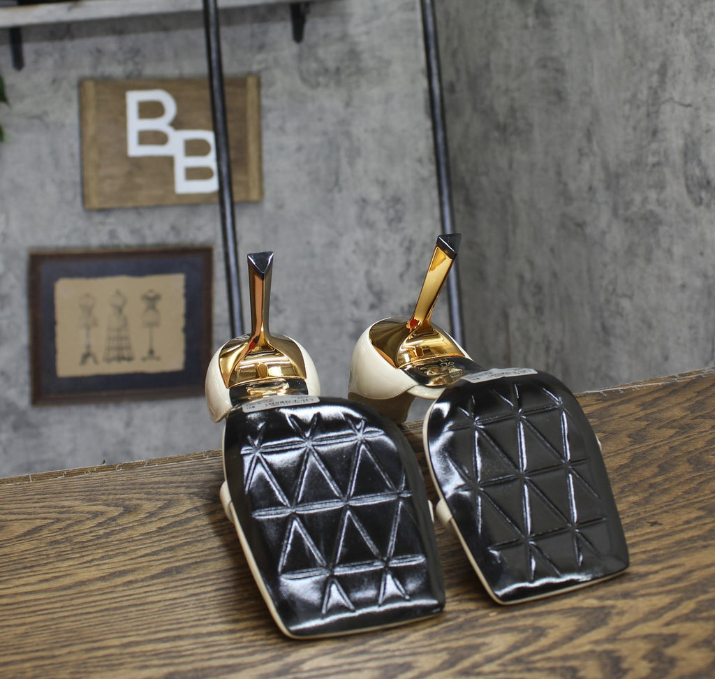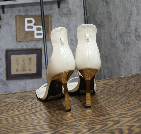 Crafted from glossy patent leather and featuring a square toe, a slender stiletto, and a gold-tone buckle closure, the Ciara Sandals were made for striking a pose at your next event. Pair them with any maxi dress to exude elegance and sophistication all at once.