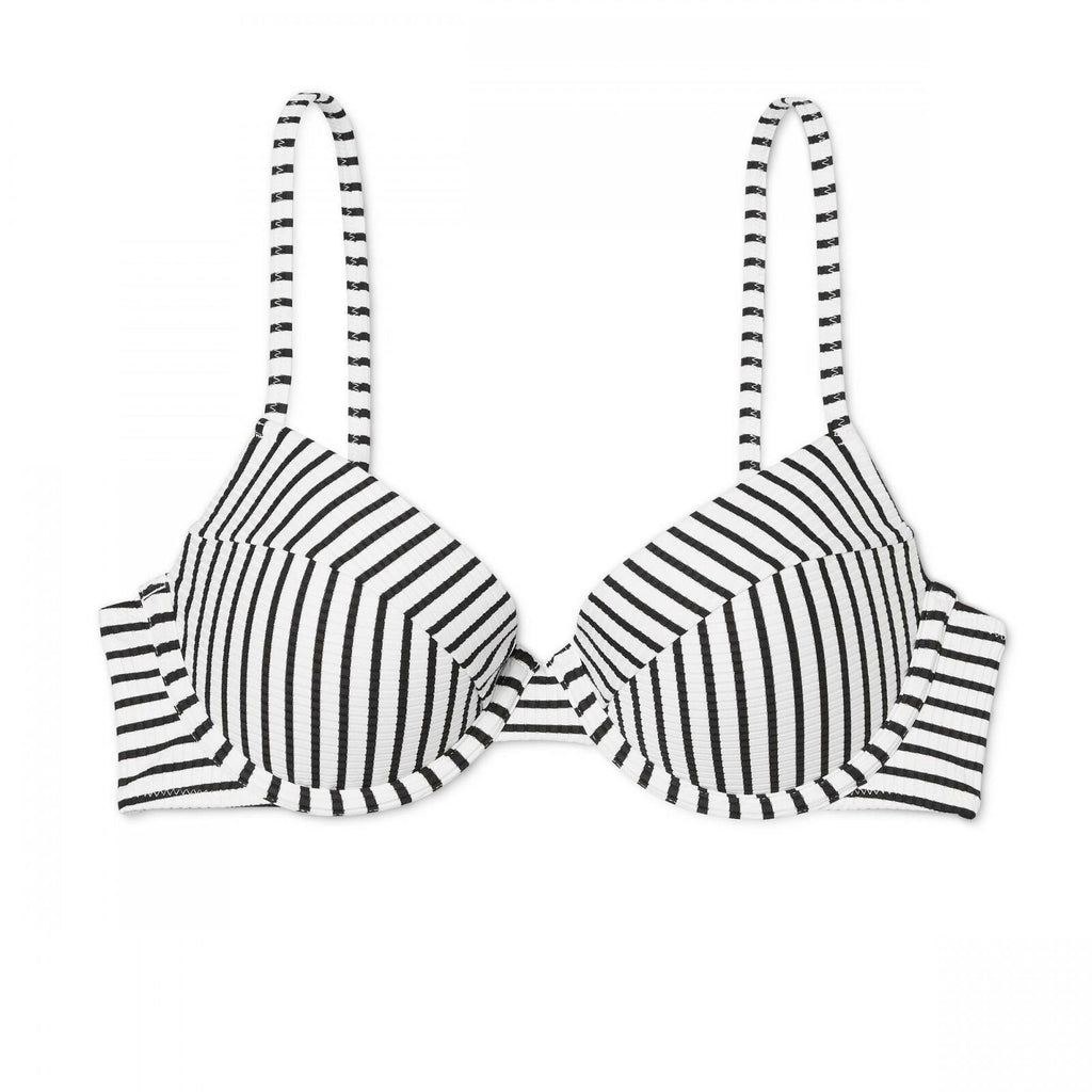 Swimmers of all stripes will appreciate the Cabana Light-Lift Ribbed-Texture Striped Bikini Top from Shade & Shore. Ribbed material adds a little extra interest to this black-and-white striped bikini top, creating a classic look you'll love. Continuing the classic theme is a tried-and-true underwire design with sewn-in soft cups for support, and a standard S-hook back closure paired with adjustable straps. Whether you opt for matching separates or decide to mix it up with solid white, black or red bottoms, you really can't go wrong with this timeless top.