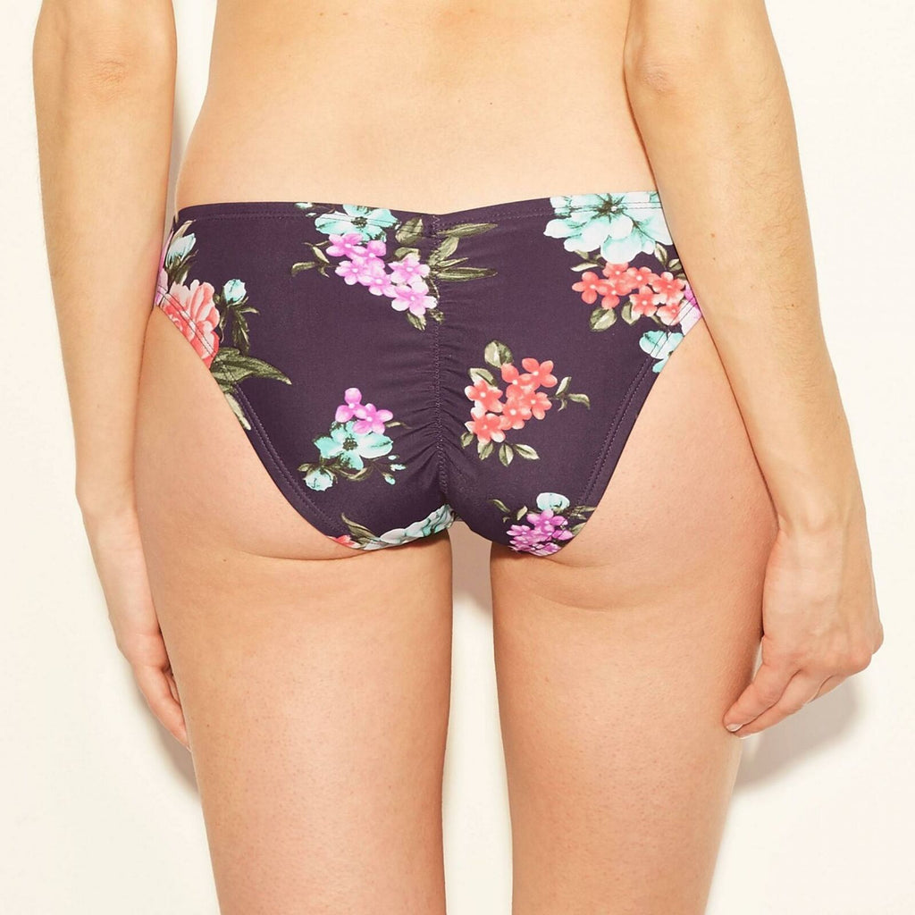 From lounging poolside to taking a walk on the beach, add a stylish touch to your sunny days with the High-Leg Cheeky Bikini Bottom from Shade & Shore. This high-rise bikini bottom is made from a stretchy nylon-spandex fabric that keeps you nice and comfy in all your sunny escapades, while the cheeky cut brings a flirtatious twist to your beach day or pool party. Adorned with allover colorful floral prints on a purple background, this floral-print bikini bottom looks great with coordinating floral-print tops or solid designs, helping you hit the beach or pool in a style that's uniquely you.