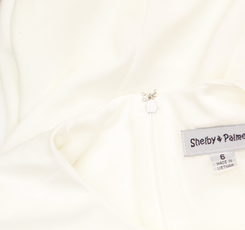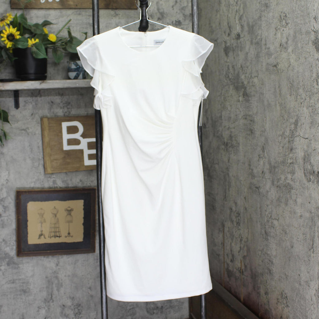 Shelby & Palmer Womens Chiffon Sleeve Knit Ruched Front Dress White 6