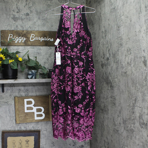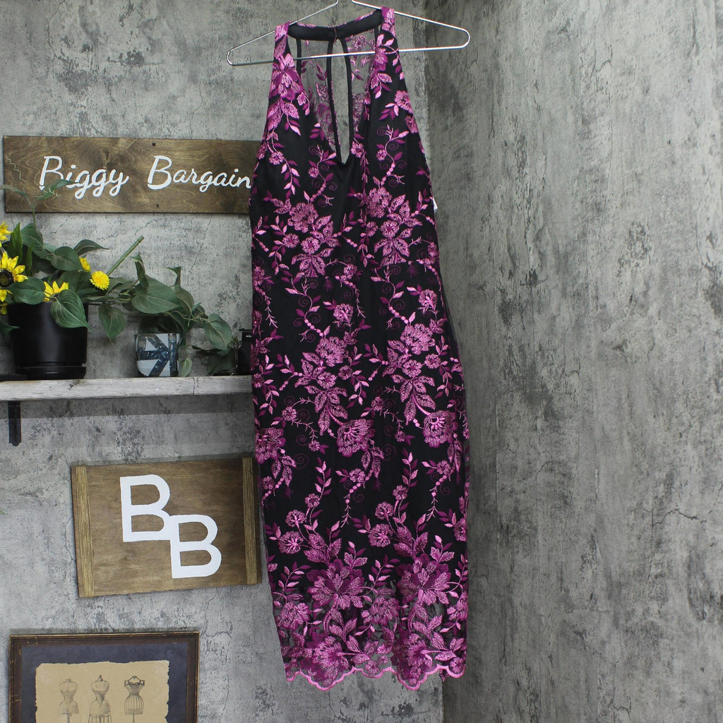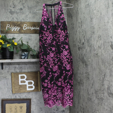 Siena Womens Embroidered Mesh Sleeve Dress SATP1126 Fuchsia Pink / Black 12