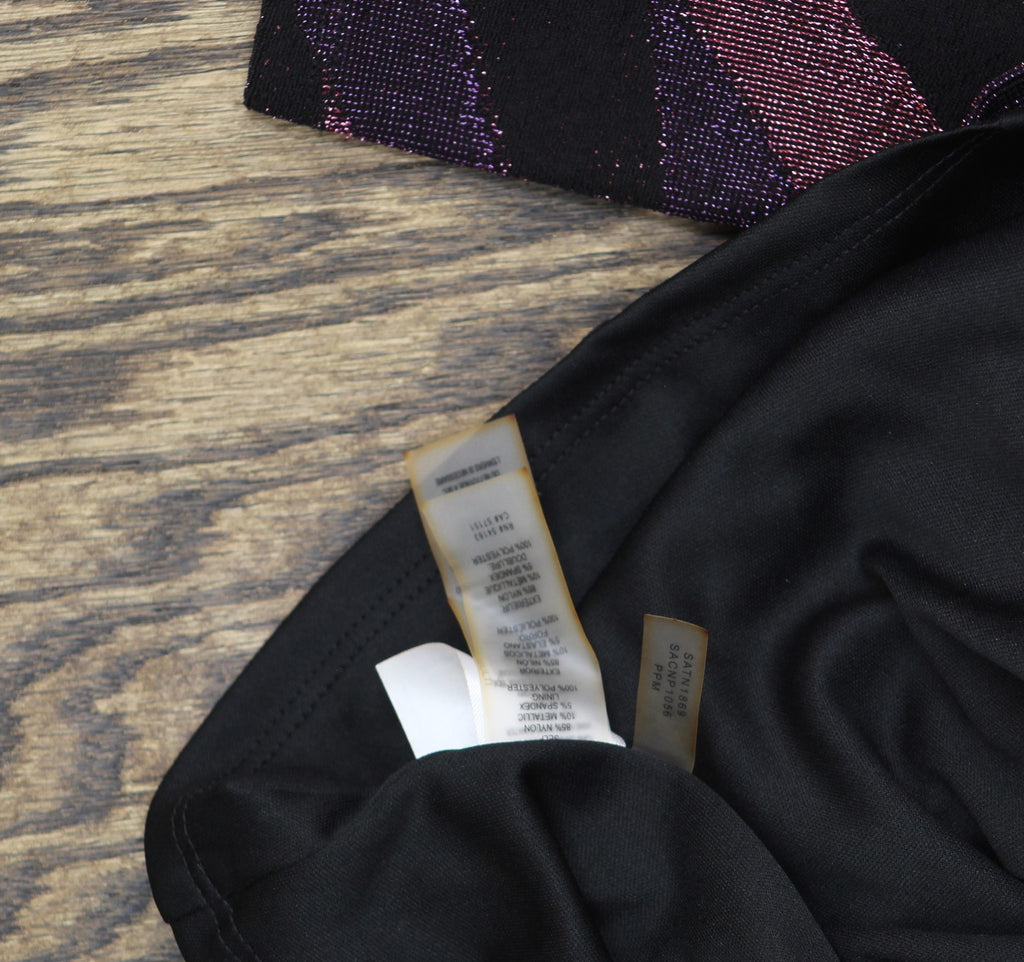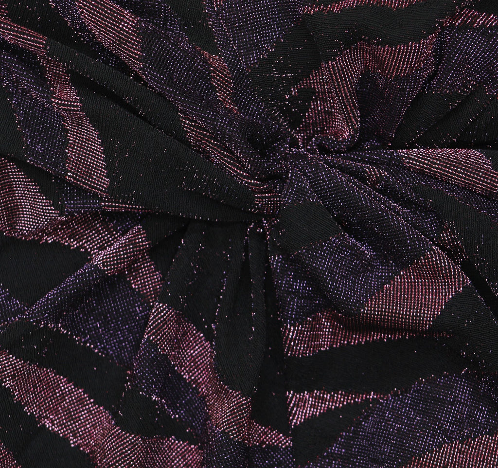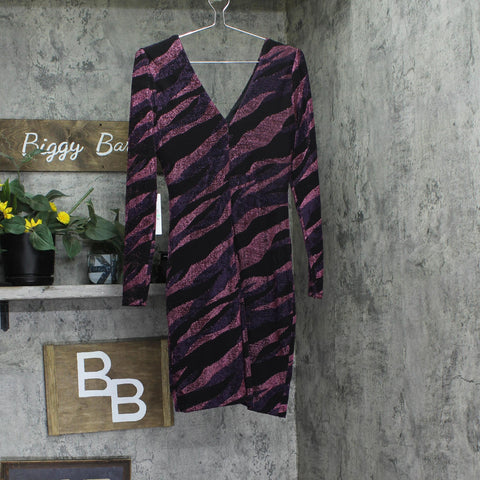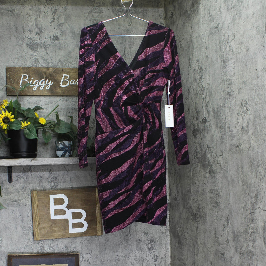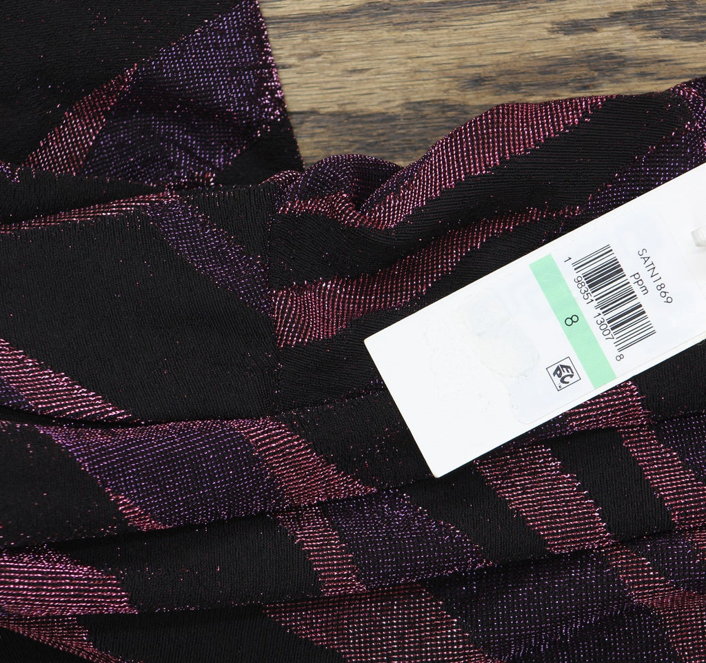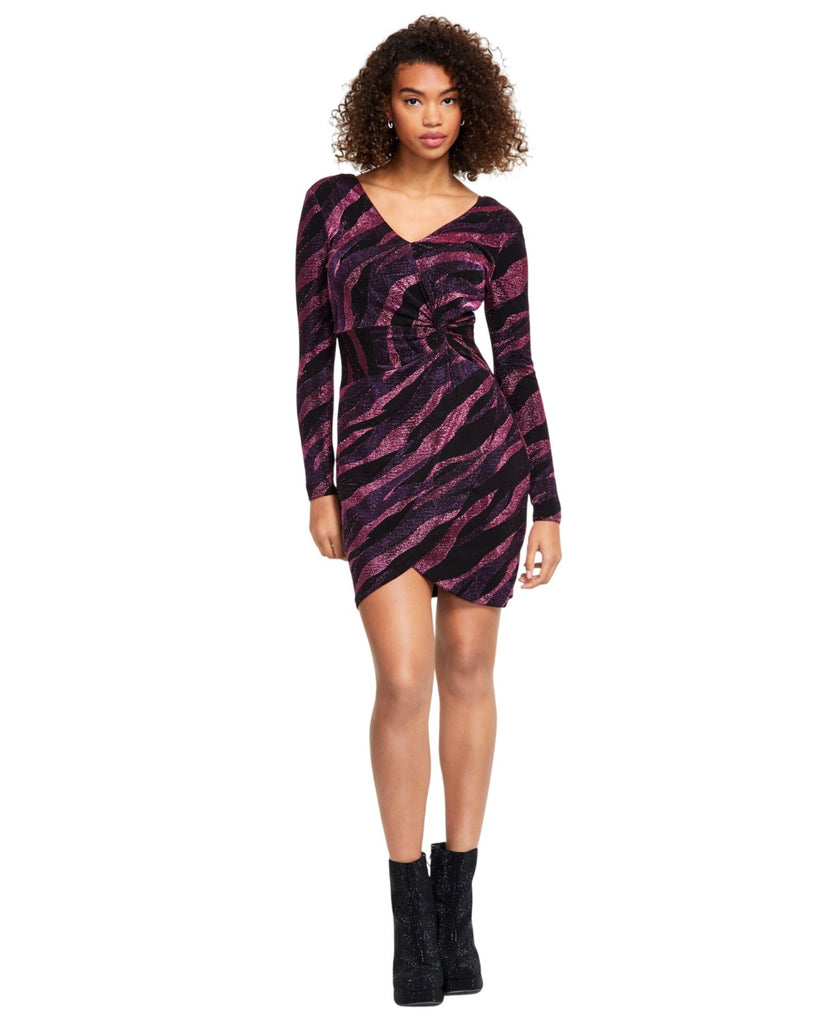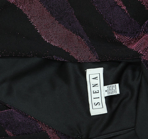 Sizzling with shimmer, modern stripes meet at a ruched side twist in this V-neck knit dress from Siena.