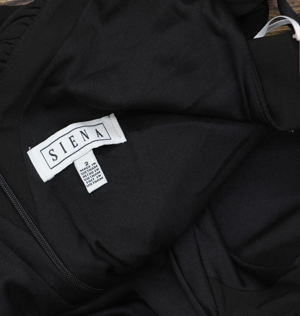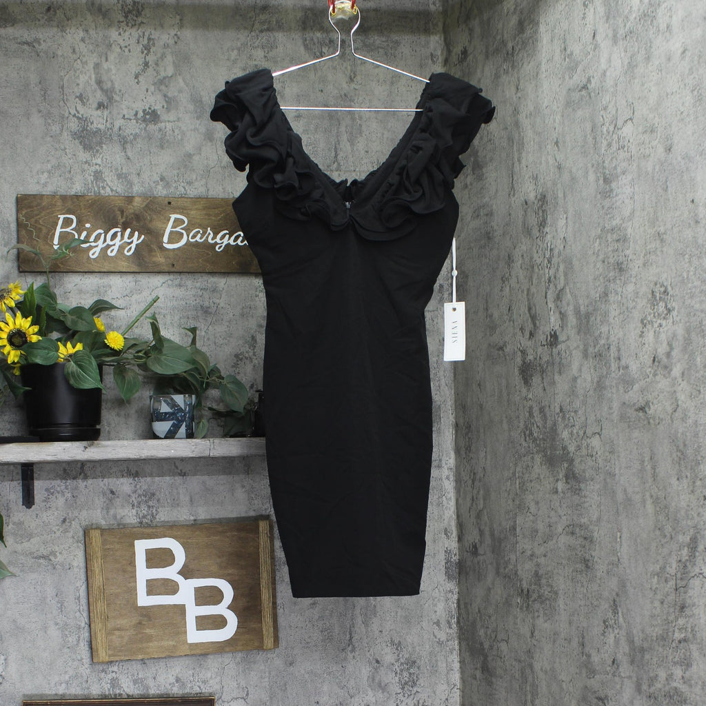 Siena Womens Ruffled V-Neck Ponte Bodycon Mini Dress SATP1725 Black 2