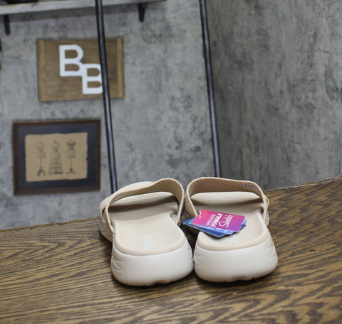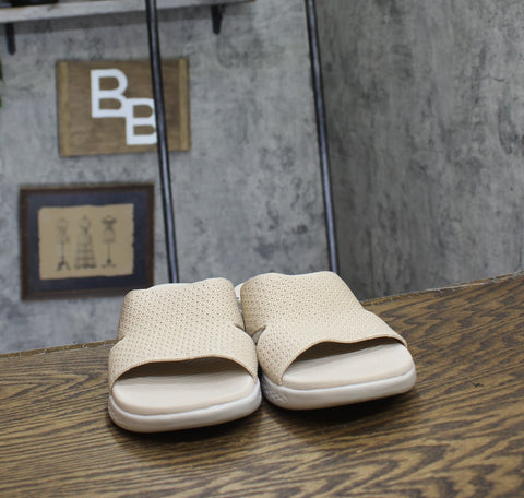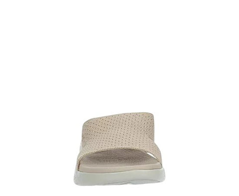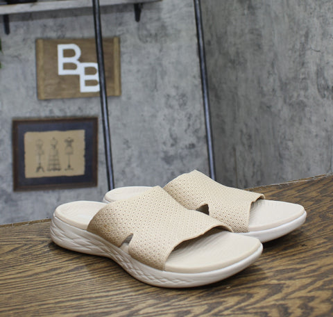 With a Stretch Fit mesh fabric upper featuring a sparkle finish for extra flair, this Slide is machine washable for easy maintenance, so enjoy your sporty endeavors. The contoured Goga Mat footbed and lightweight 5GEN cushioning cradle your foot while the Rubber outsole provides traction on the beach, by the lake or around town. Fabric upper Slip-On Machine washable Contoured Goga Mat footbed 5GEN cushioning Rubber traction outsole.