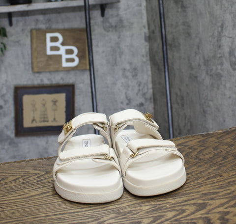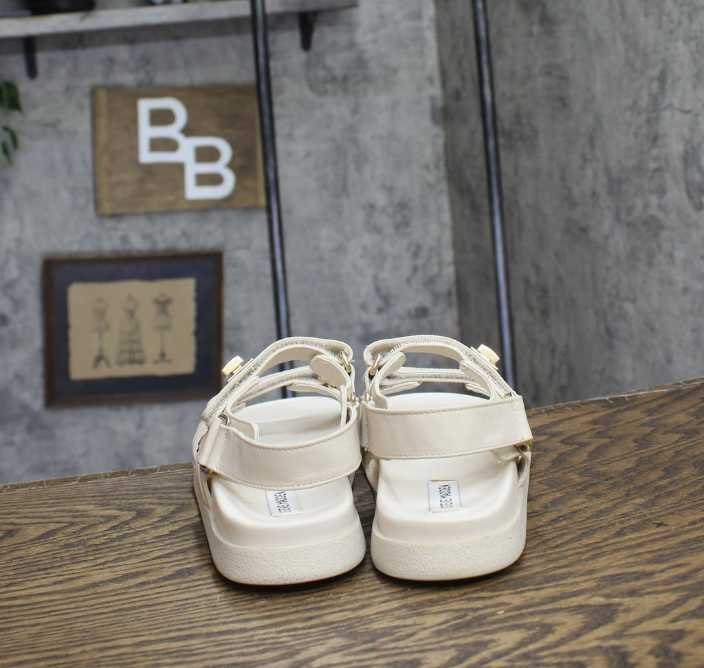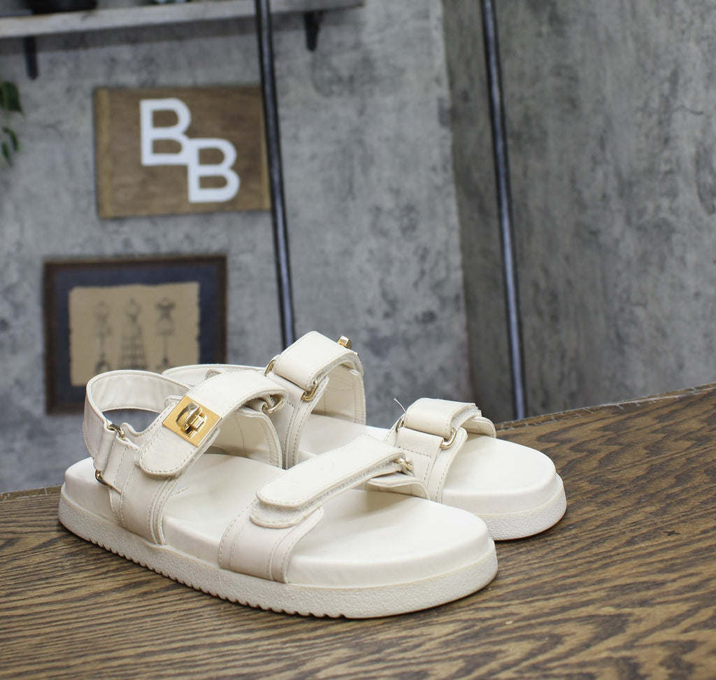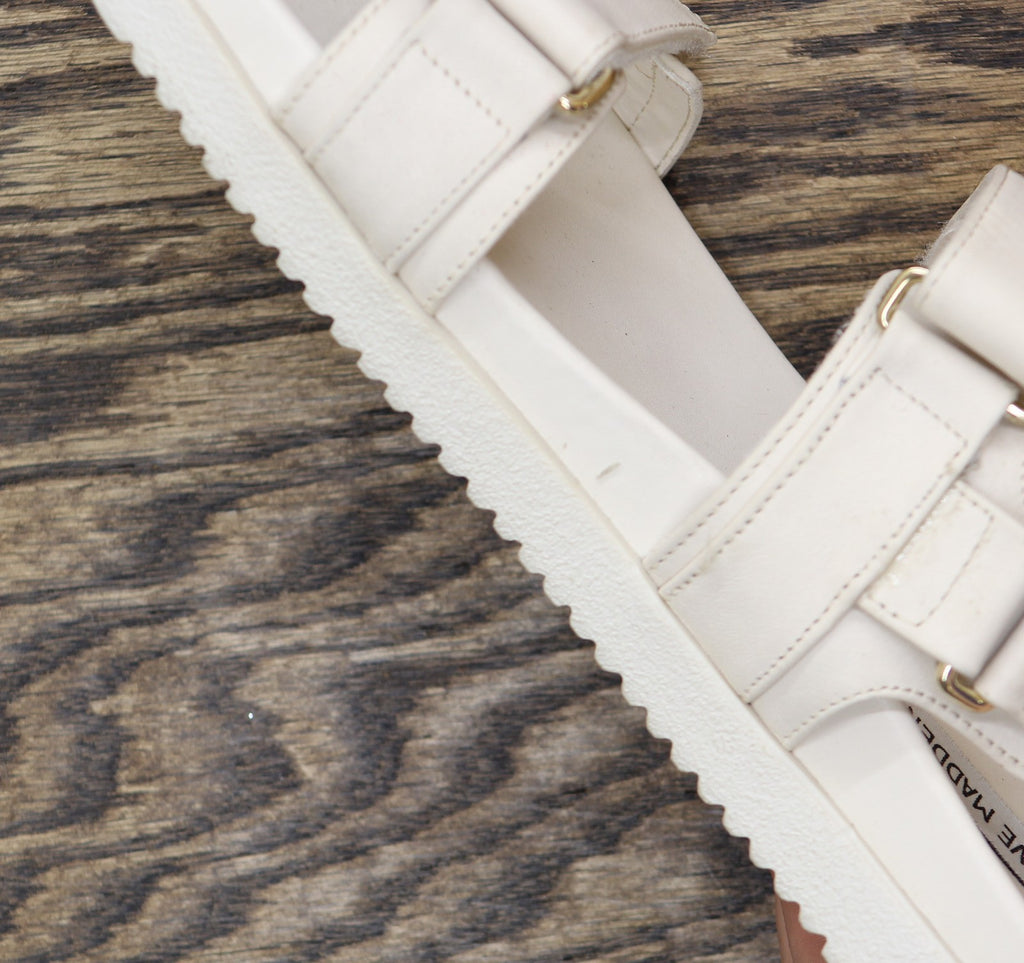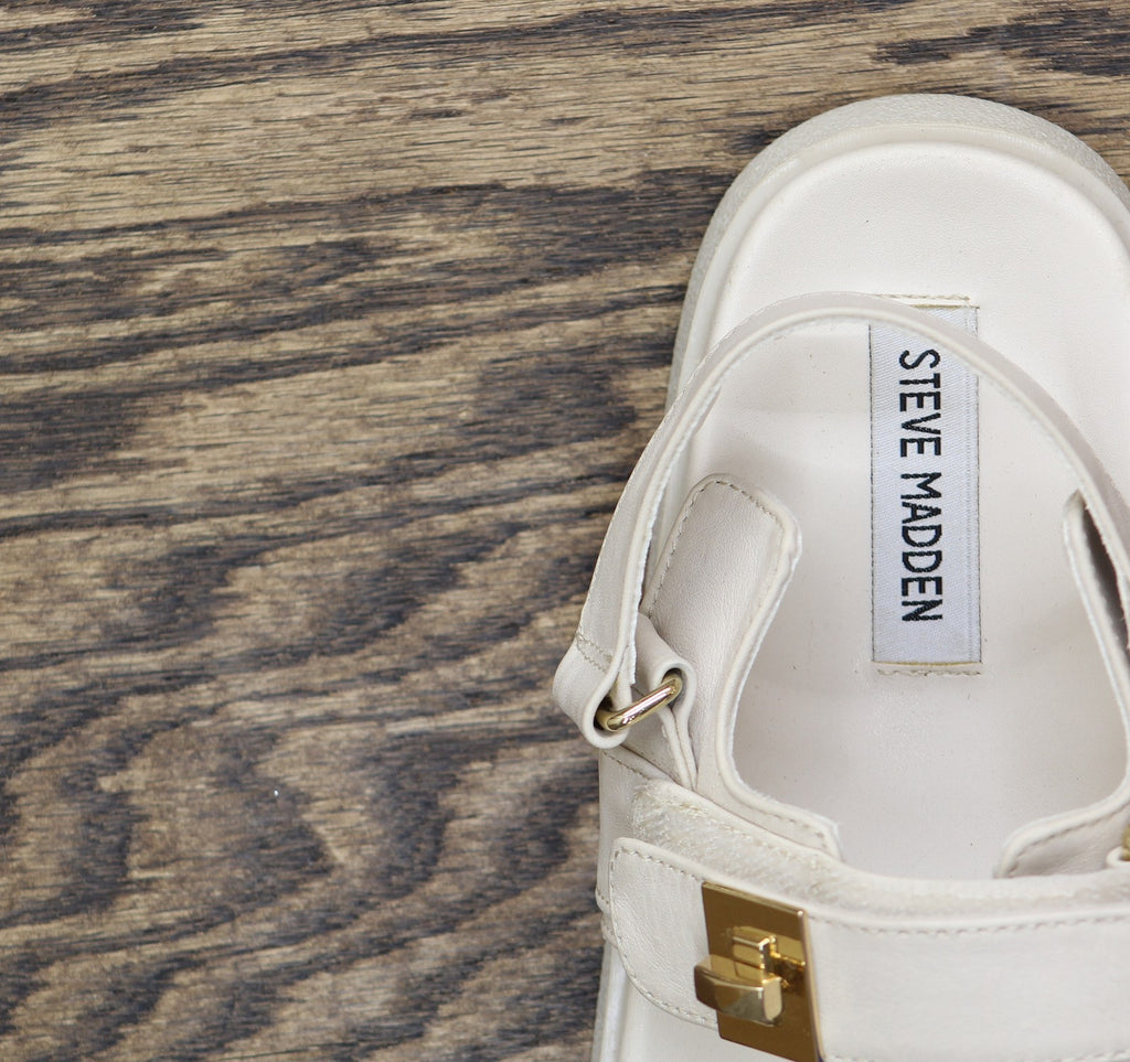 Bold & Elevated Style: The Steve Madden MONA women's flatform sandals redefine a classic three-strap design with luxurious leather construction and eye-catching gold-tone hardware, perfect for making a statement. Customizable Fit & Support: Featuring an adjustable hook-and-loop front strap, these women's sandals offer a secure, personalized fit, ensuring all-day comfort and stability. Effortless Comfort: Designed with a molded footbed, the MONA provides enhanced cushioning and arch support, making it the perfect blend of fashion and function. Sleek Yet Substantial: A 1-inch flat sole offers a light lift while maintaining a sleek, versatile silhouette that pairs effortlessly with anything from denim to dresses. Premium Craftsmanship: Made with a high-quality leather upper and durable synthetic lining, sock, and sole, these Steve Madden sandals promise lasting wear and trend-forward appeal.